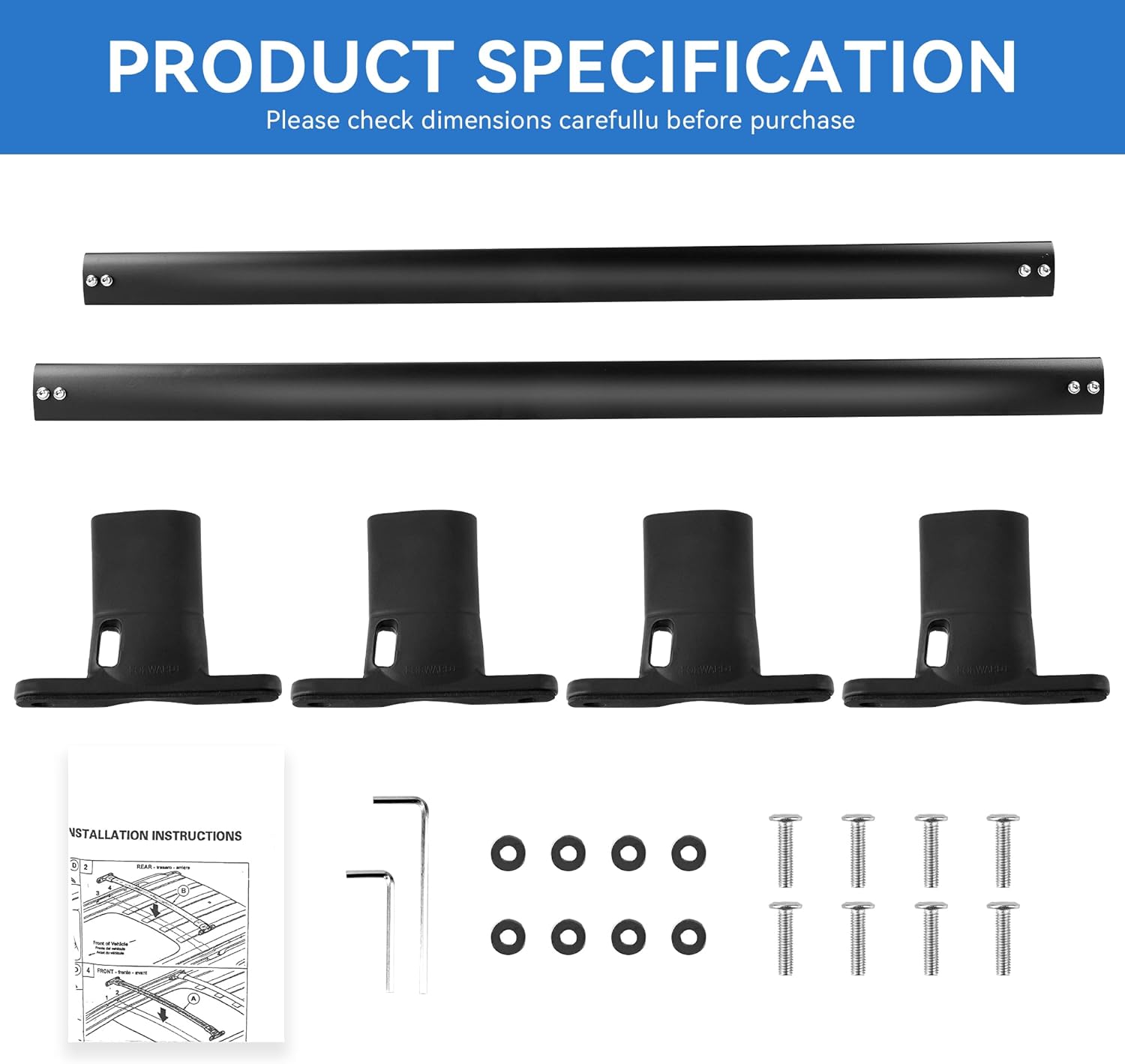 【Outstanding load capacity】: The explorer cross bars maximum support weight is up to 165LBS(75KG). Maximize your car capacity. It provides a good base and convenience for items which won’t fit in your vehicle. Such as: surfboards, camping gear, canoes, kayaks, bicycles, skis, roof bags, roof boxes, sporting goods, ladders, luggage, fishing poles… whatever you want!!! it’s specially adapted for your vehicle, better than the universal ones.