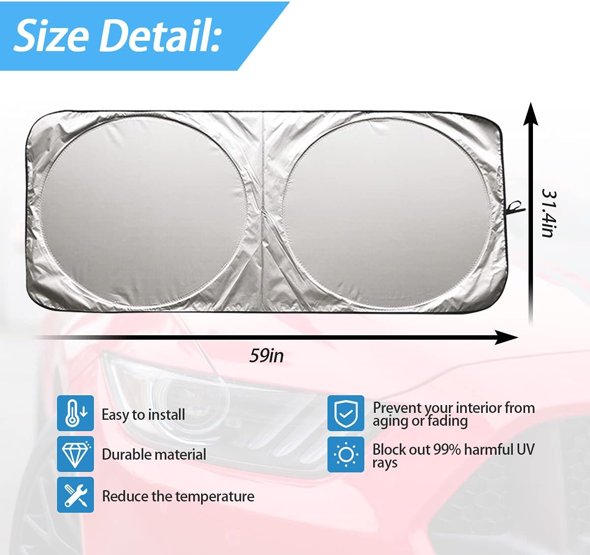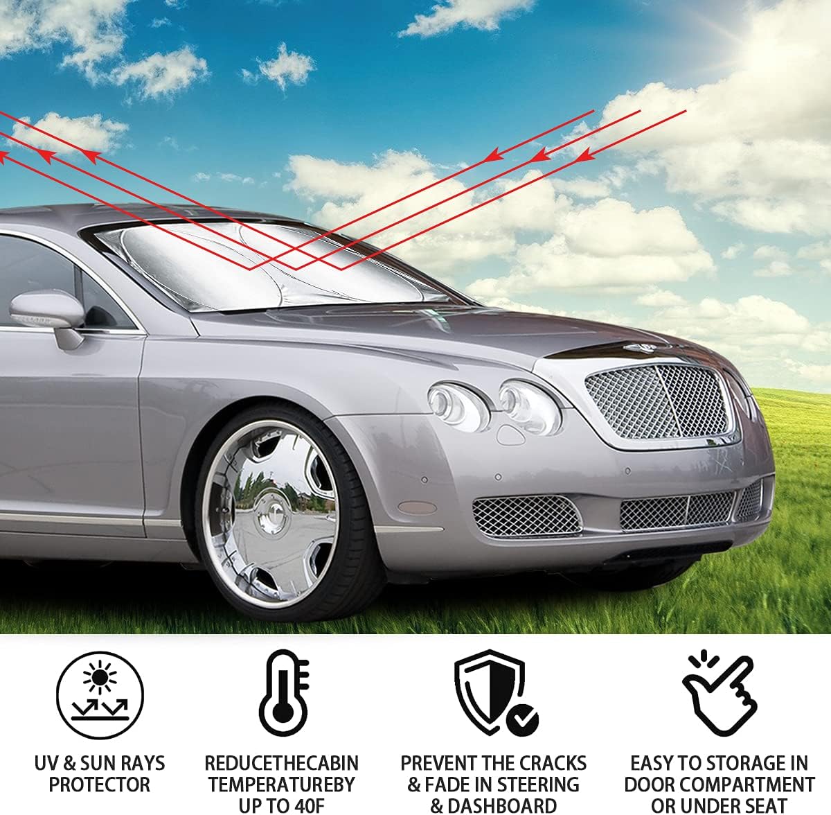 Foldable Windshield Sun Shade, Bonus Steering Wheel Sun Shield to Block UV Rays Keep Your Vehicle Cooler, Easy to Use Car Interior Accessories (Large)