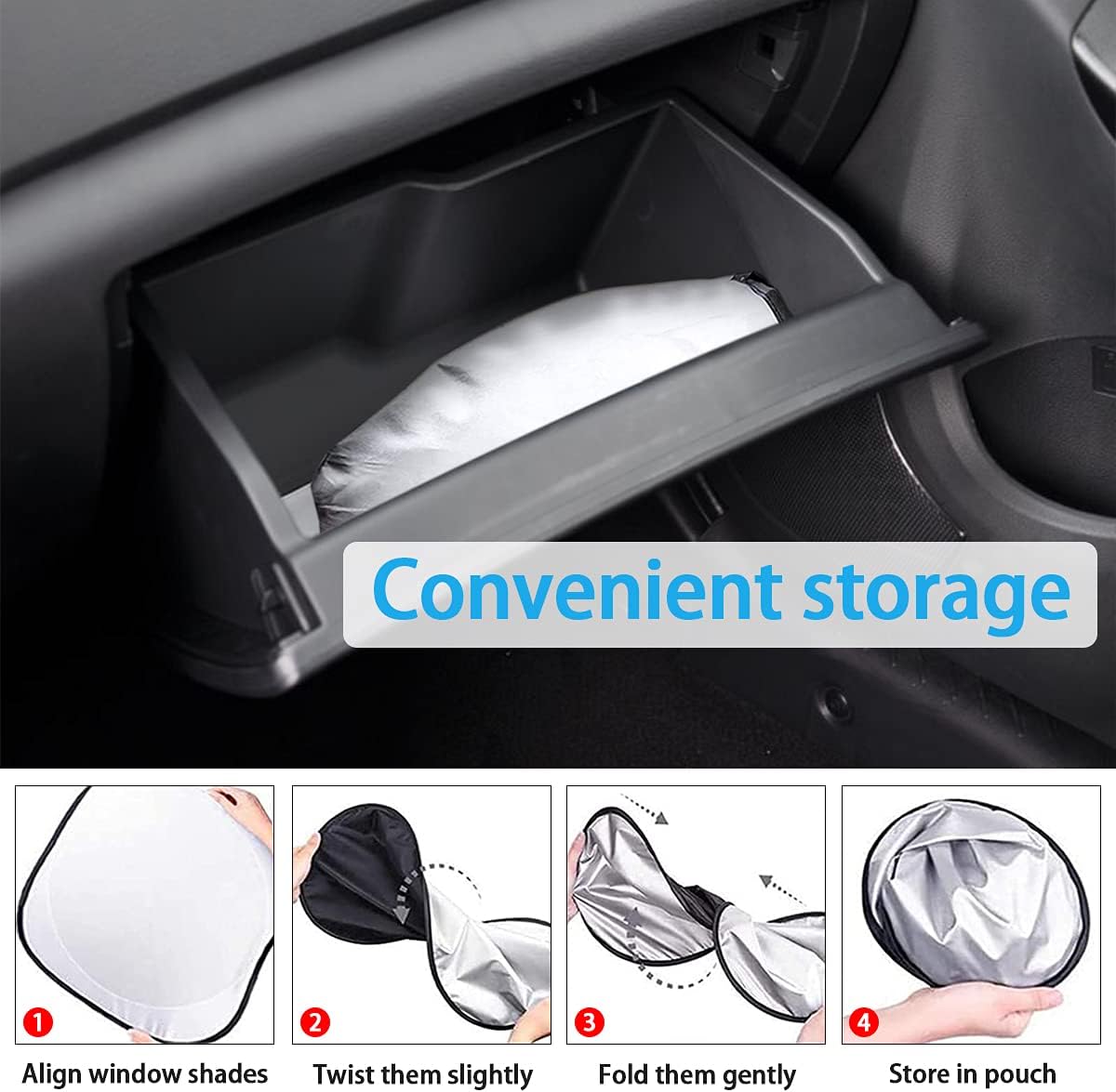 Storage Design: LoyaForba Car Windshield Sun Shade easily pops out and folds back in seconds making it convenient for daily use. Designed to be stored in the door pockets of your auto vehicle.The product contains a storage bag, you can easily stash the sunshade in the storage bag or store long term.