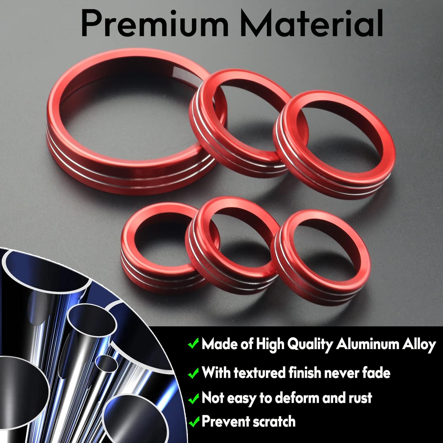 for 2021-2025 Ford Bronco AC Knob Cover Accessories Center Console Switch Volume Temp Control Button Ring Trim-Red 6Pcs (Not fit Bronco Sport)