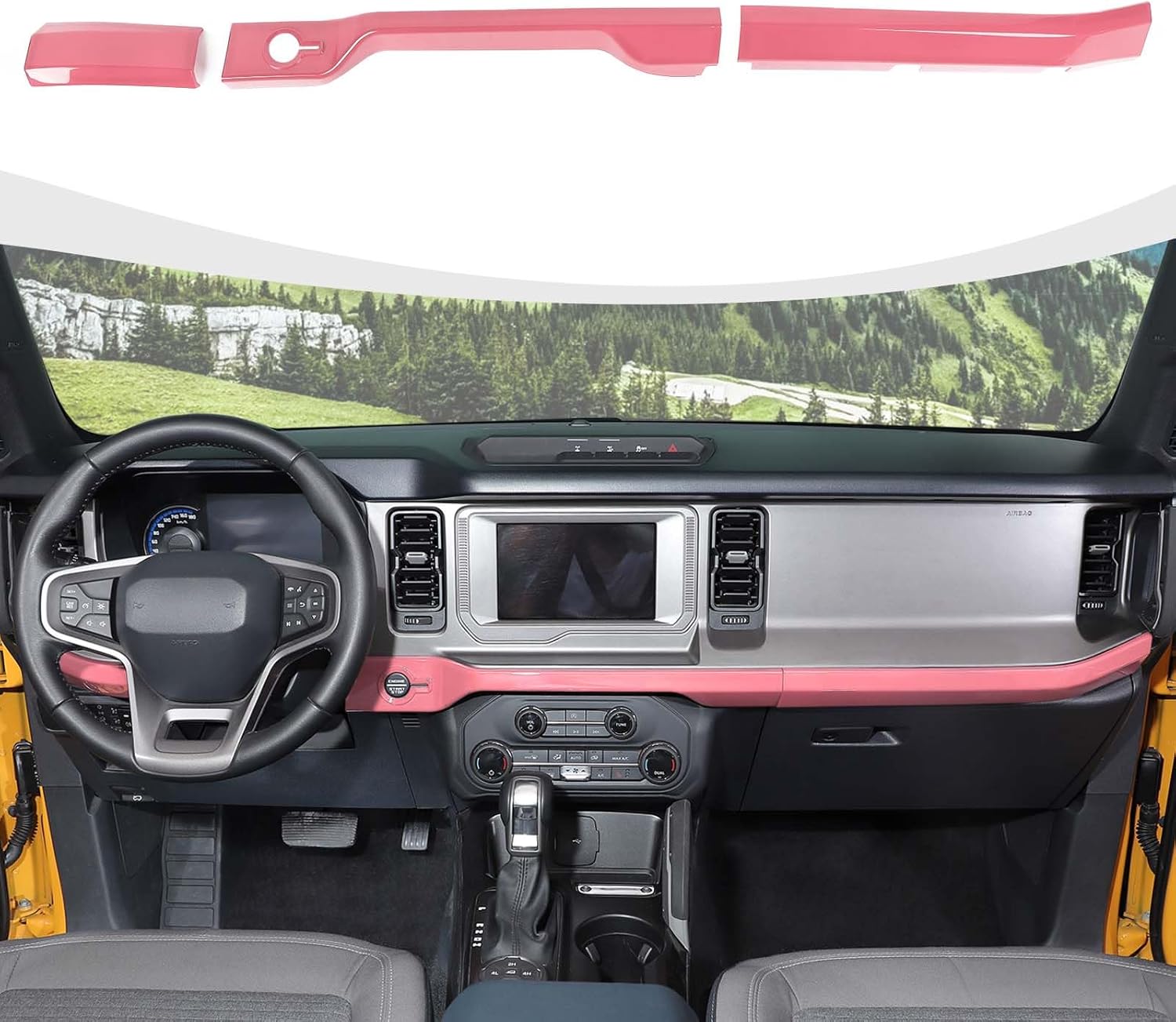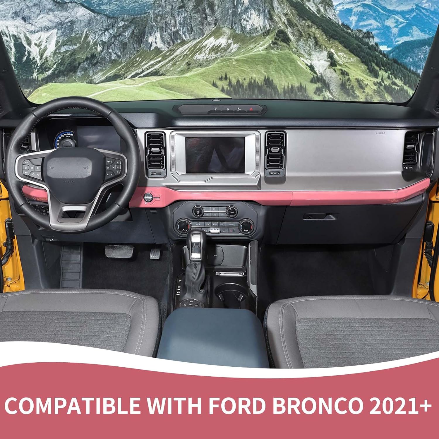 for Bronco Dash Panel Cover, Center Console Dashboard Trim Compatible with 2021-2025 Ford Bronco Interior Accessories, Pink