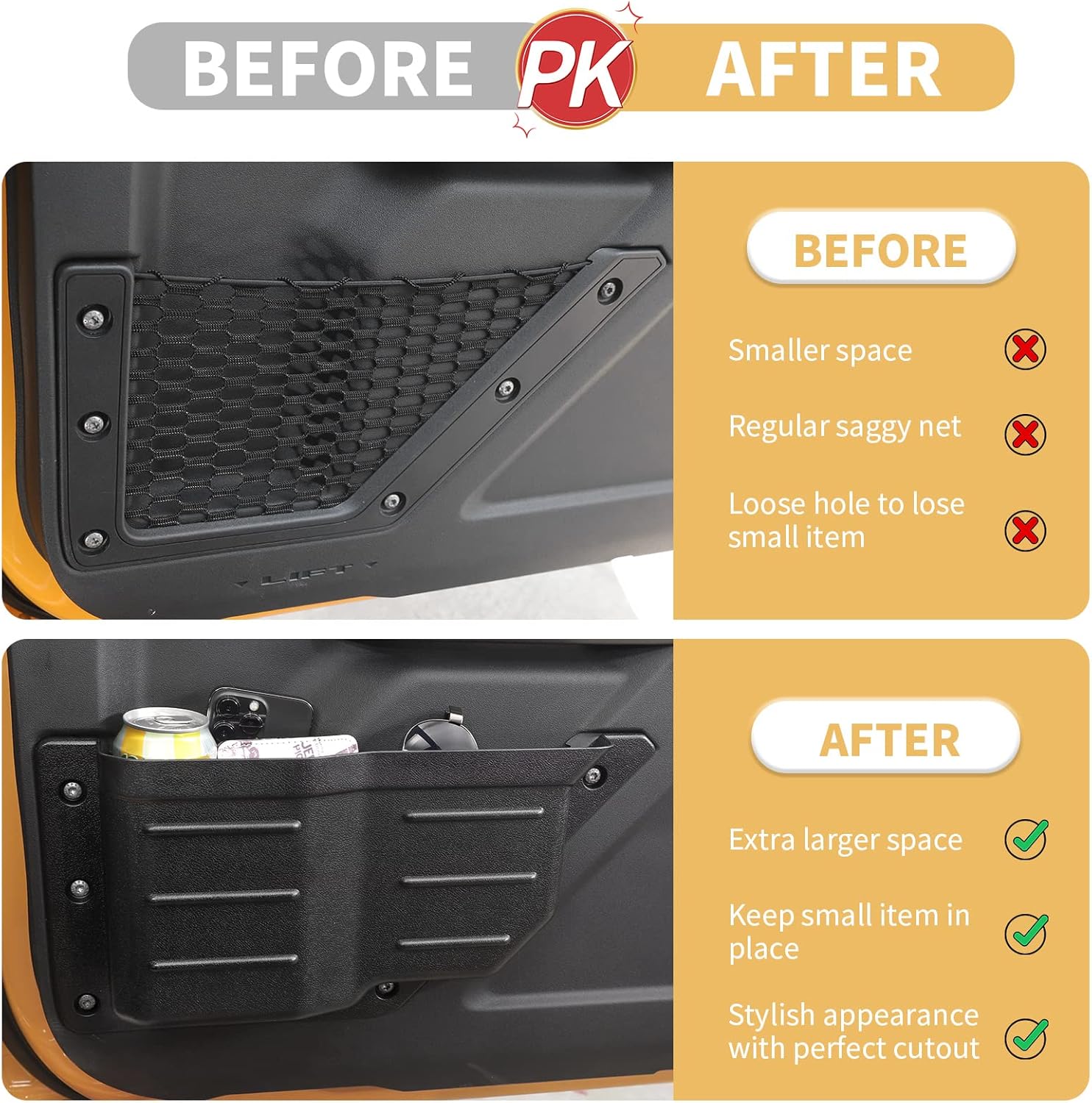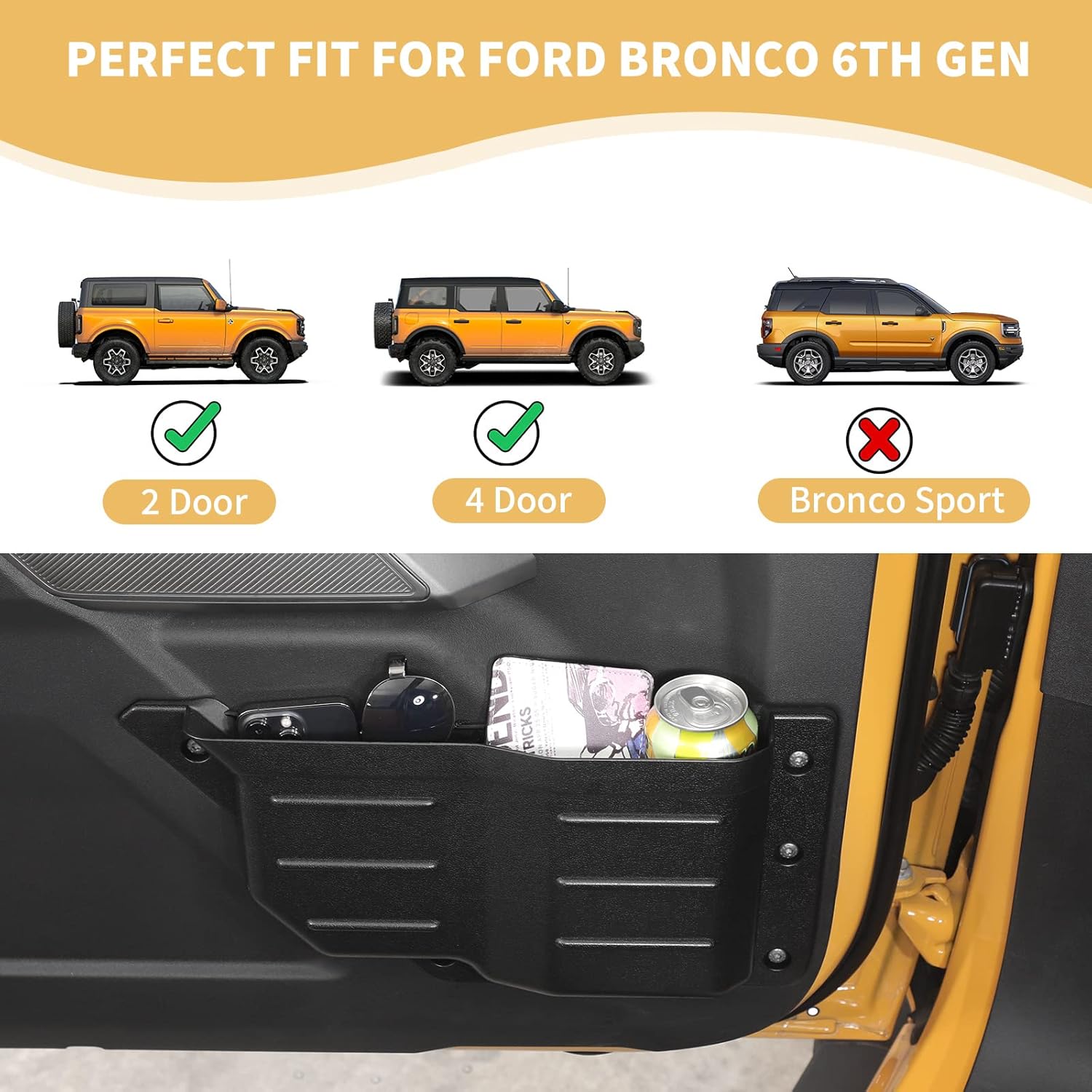 New Style: Specially made for cup holder version, these will not interfere legs while get in, out or driving. Add more storage space for small stuff to organize for Ford Bronco