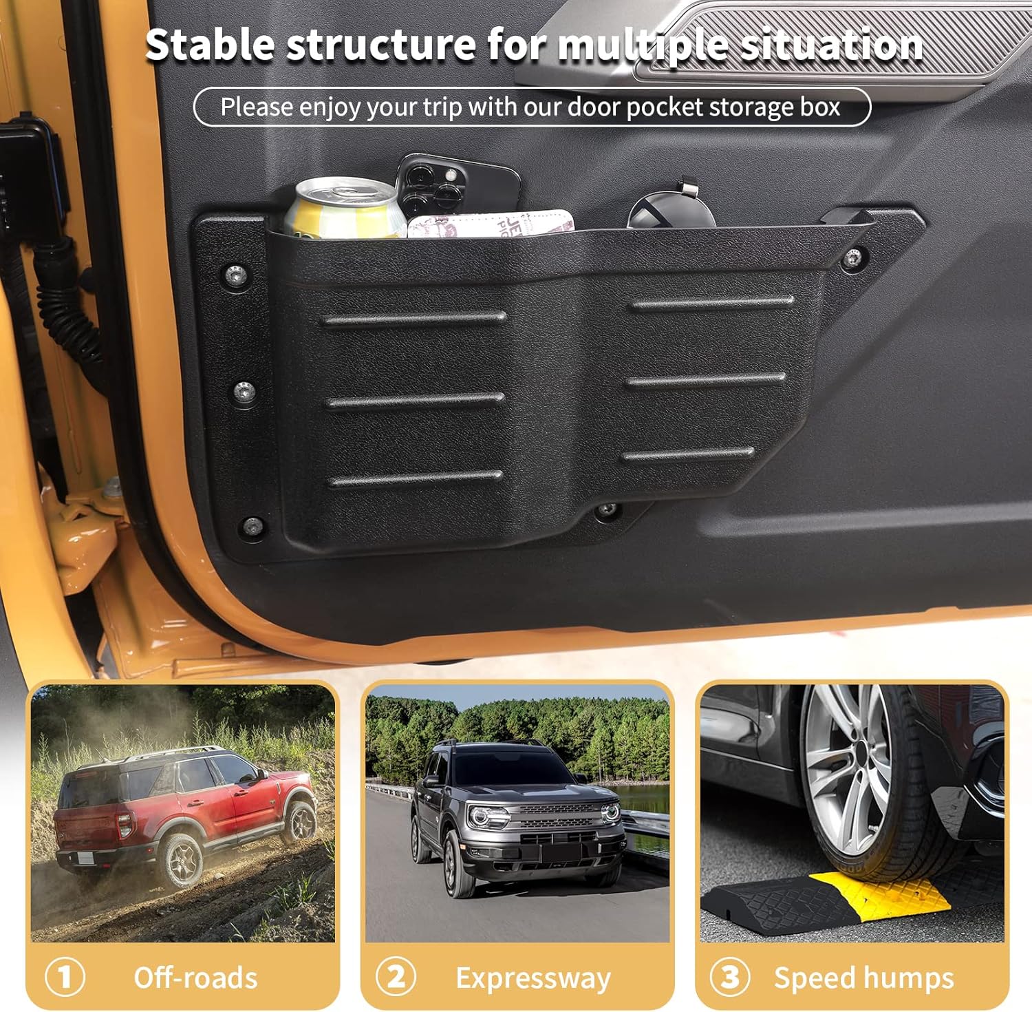 for Bronco Front Door Storage Pockets Tray Box Organizer for Ford Bronco 2021 2022 2023 2024 Black Interior Accessories 2pcs (Not for Sport)