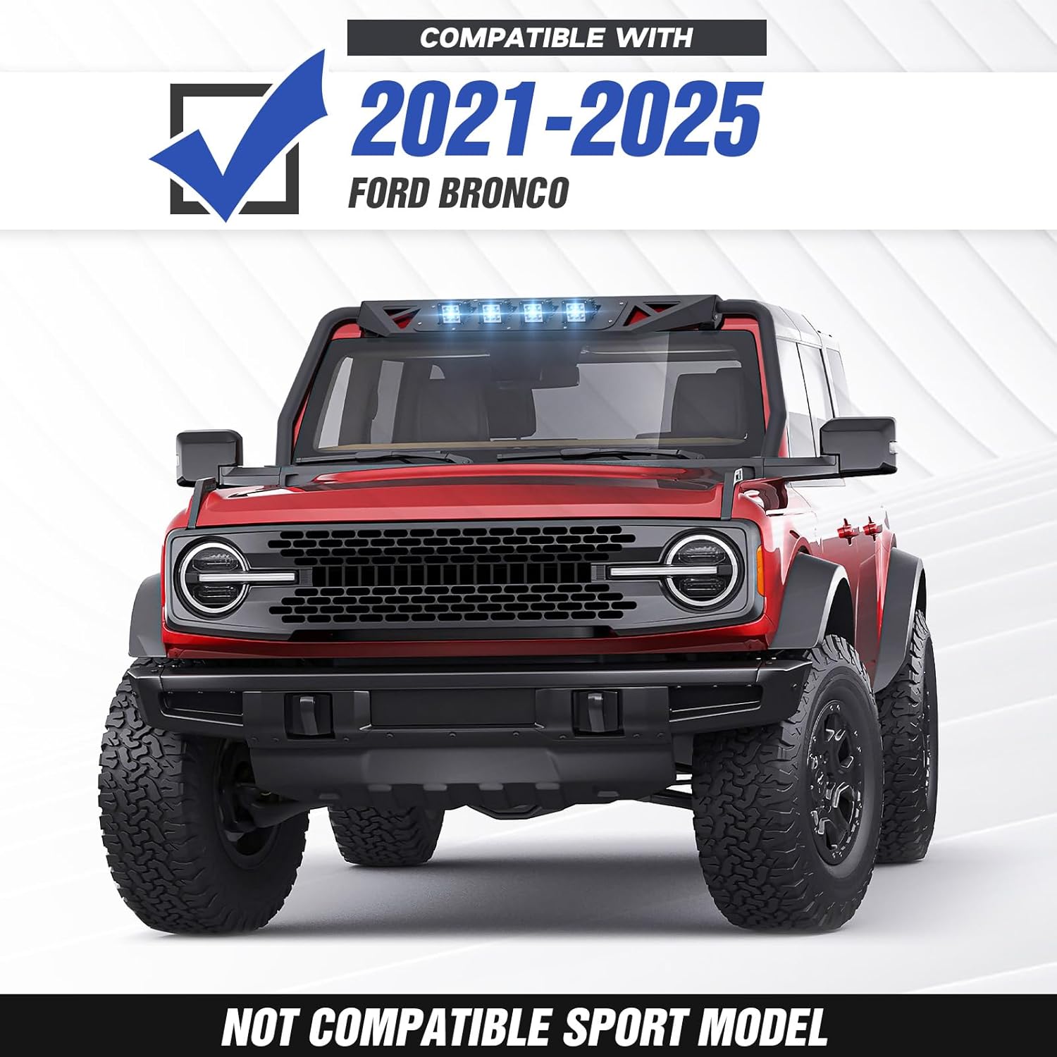 【Fitment】: Please confirm compatibility with 2021 2022 2023 2024 2025 Ford Bronco 2-door and 4-door models (Not for Bronco Sport Models) before purchase.