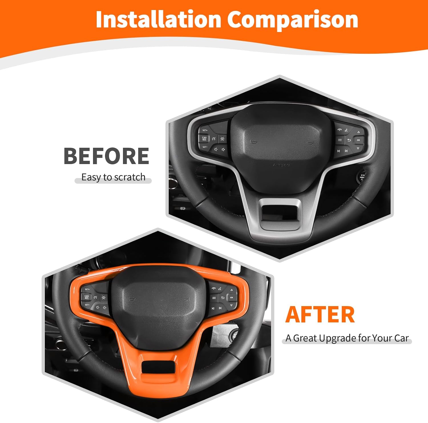 Material: Made of High Quality ABS plastic, this Steering Wheel Trim Cover Interior Decorative Accessories are lightweight, colorfast and durable, impact resistance and anti-corrosion, high and low temperature resistance. Protect the surface for a long time for Ford Bronco