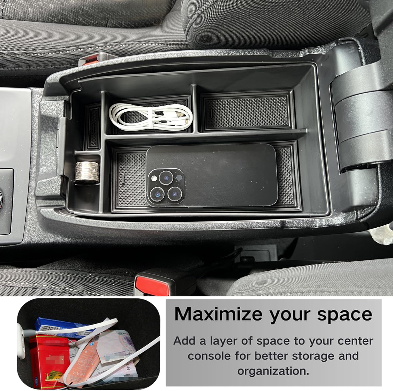 Precision Fit for Stability: Engineered using exact OEM measurements, these organizers fit snugly into your car center console. The anti-slip design ensures they stay firmly in place—no rattling or shifting while driving.