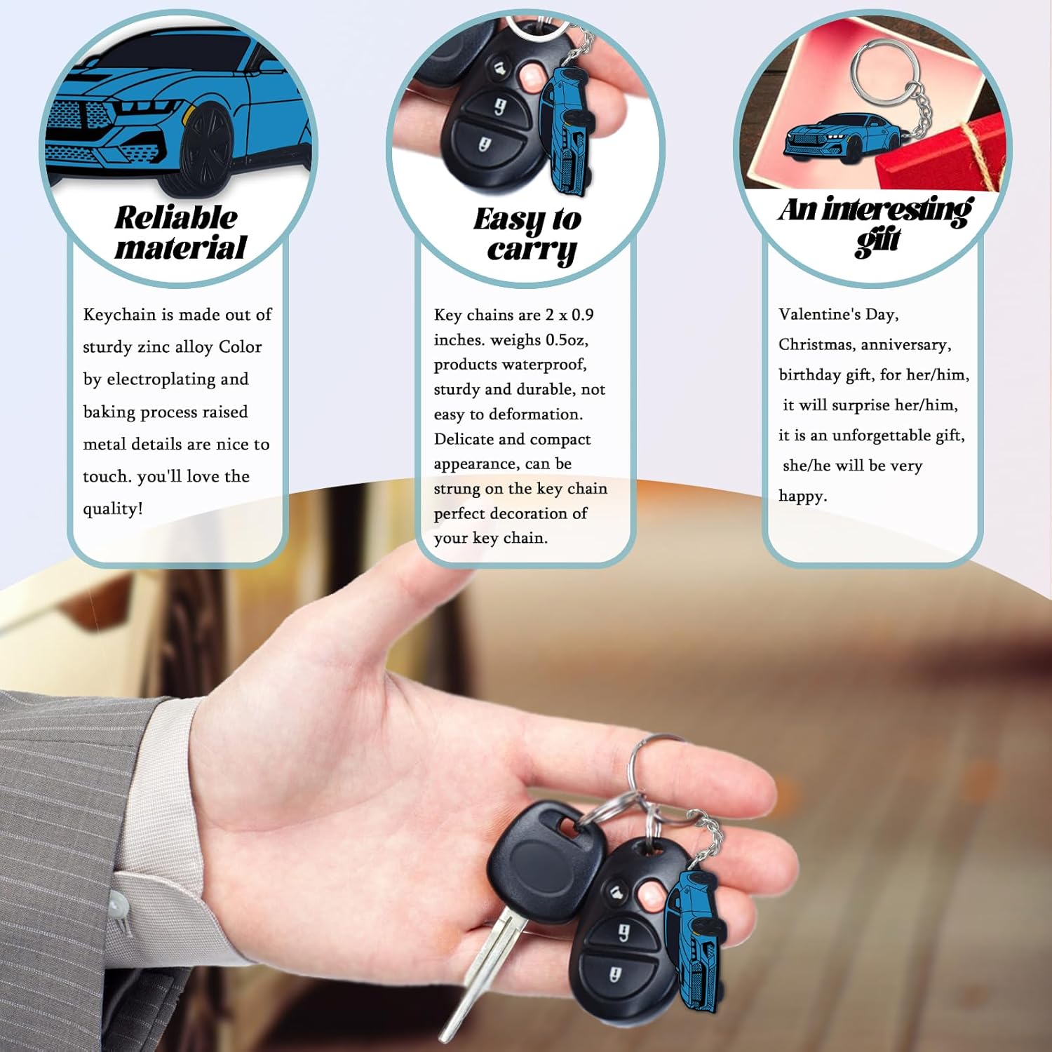 (1)Apply to: The keychain can be applied as a hanging decoration for your backpack, handbag, work card holder, key, etc., or as a decoration for car-themed parties.