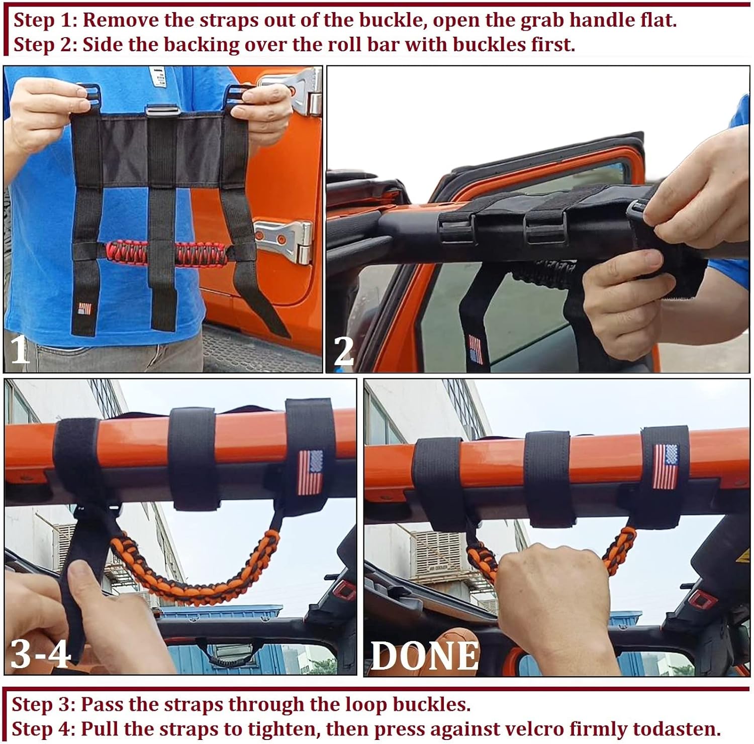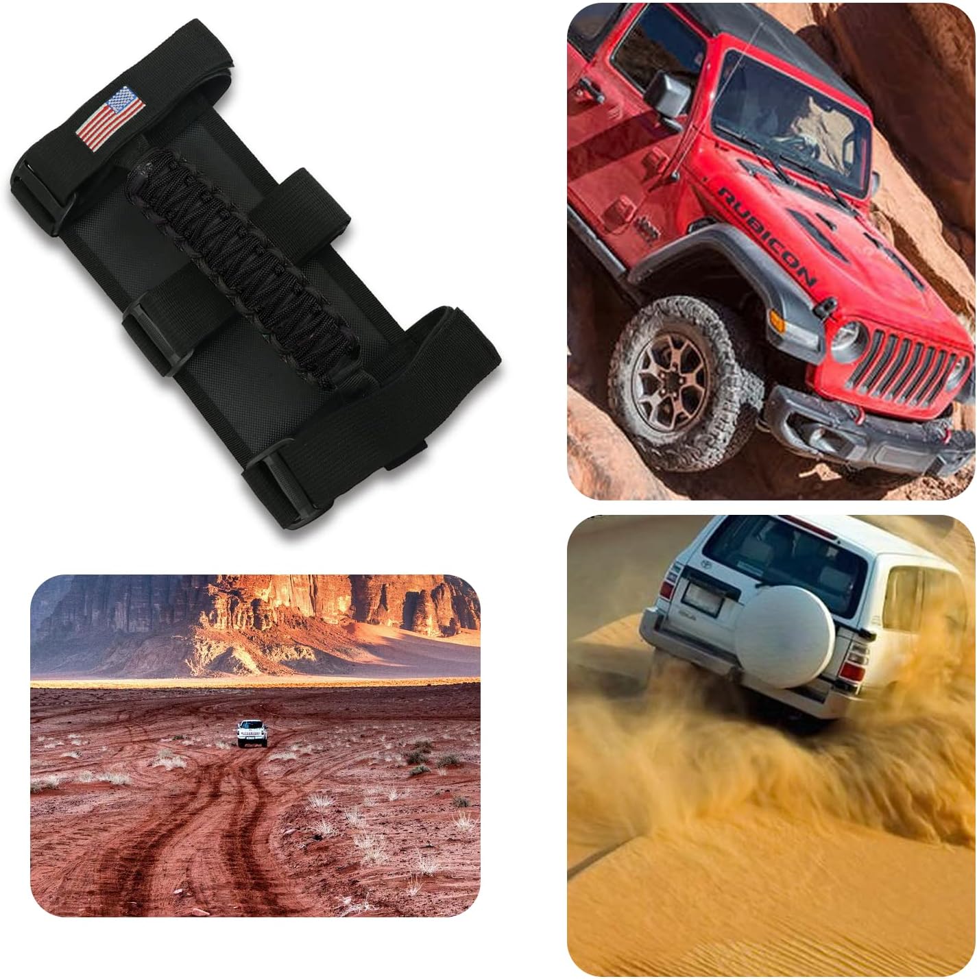 Be the first to review “for Jeep Accessories US Flag Roll Bar Grab Grip Handle for Compatible with Jeep Wrangler YJ TJ JK JKU JL JLU & Gladiator JT 1955-2023 All Models (Black, 4PCS)”