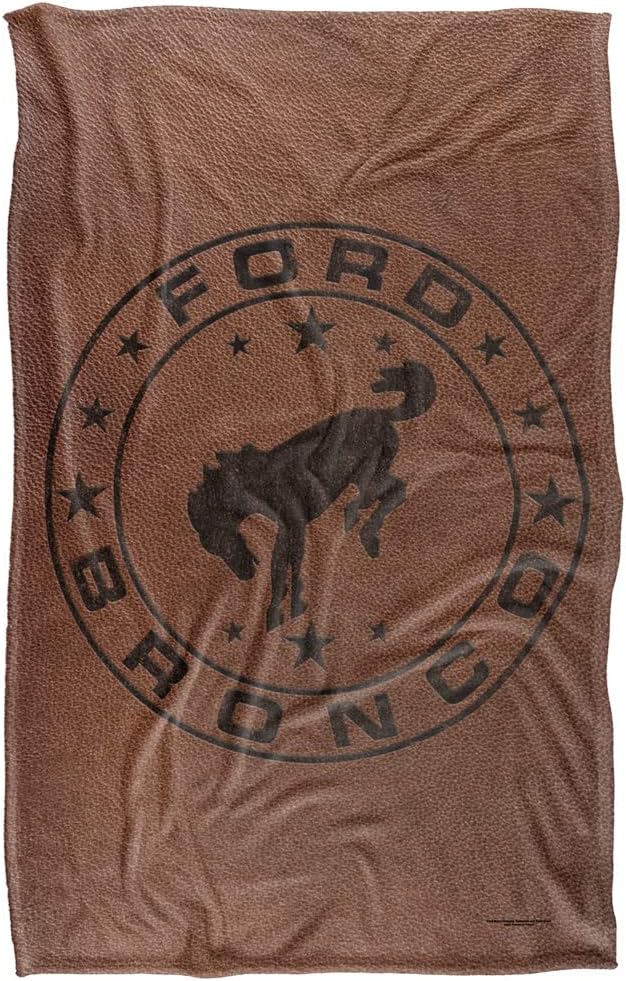FORD VINTAGE BRONCO LEATHER LOGO ULTRA SILKY TOUCH BLANKET – 300 GSM fabric provides warmth and comfort yet is lightweight and breathable, that will make a great decorative addition to any room.