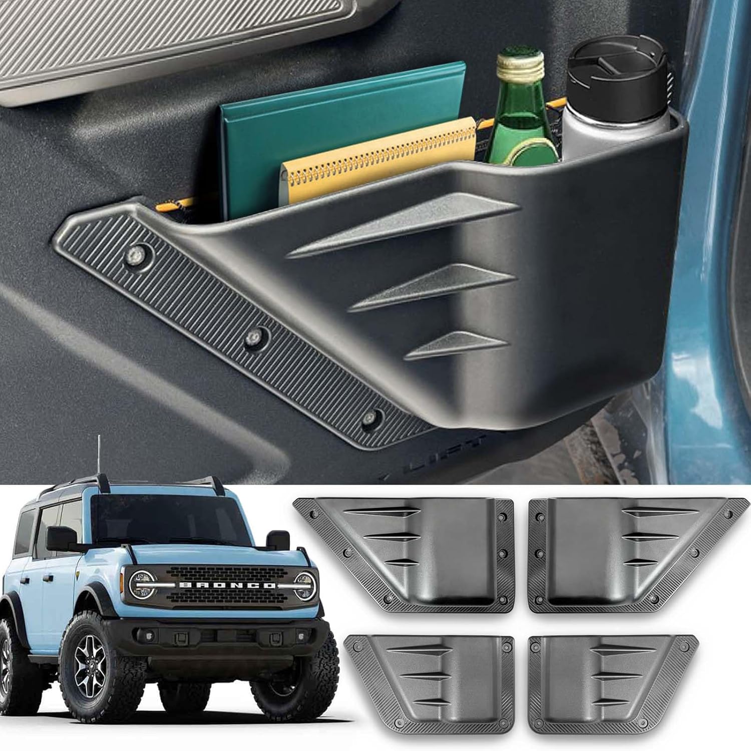 Ford Bronco Door Storage Pockets, Front & Rear Door Side Organizer Box, Interior Net Pocket Replacement Bezel Frame Trim Cup Holder for Bronco 2021 2022 2023 2024 2025 (Not Sport), 4PCS