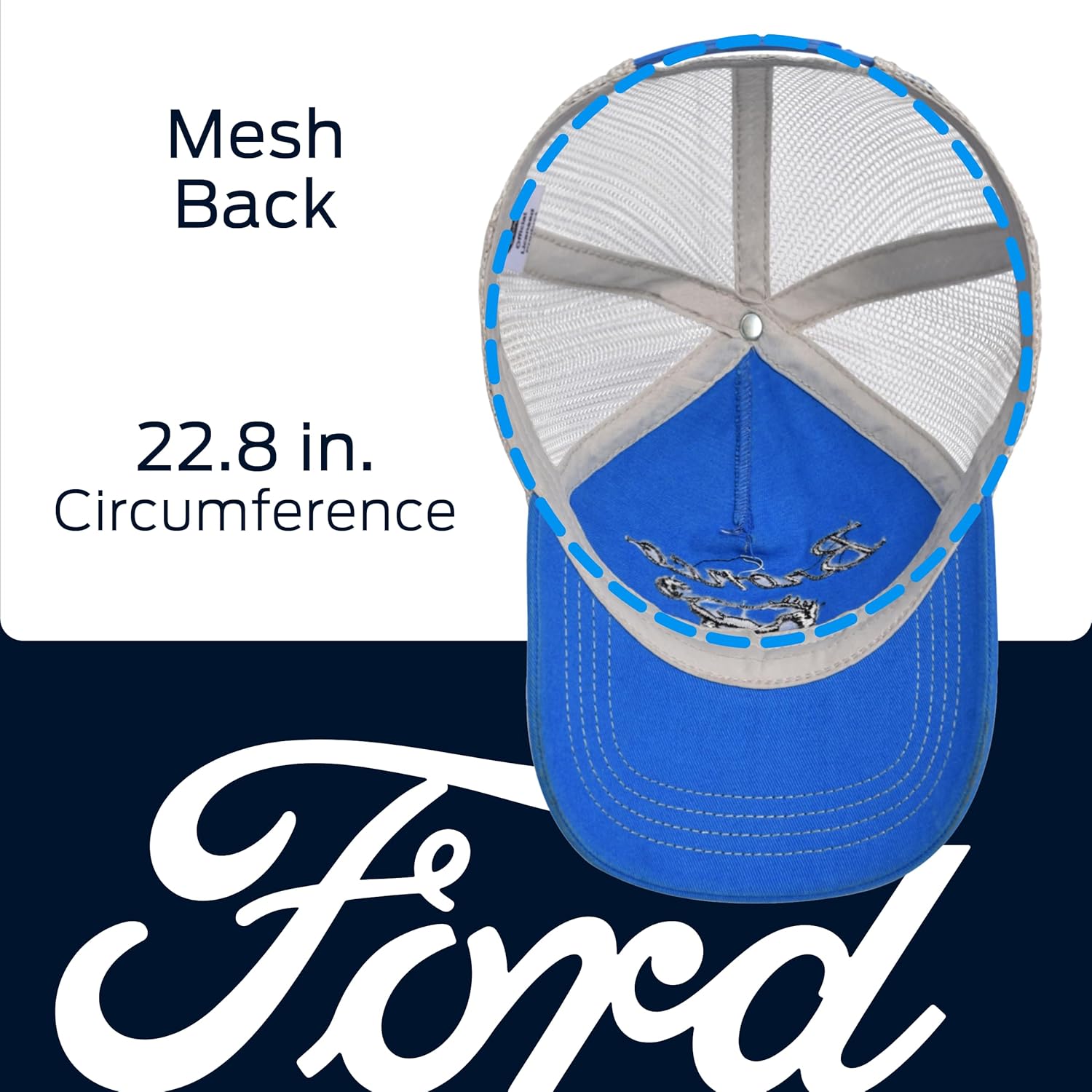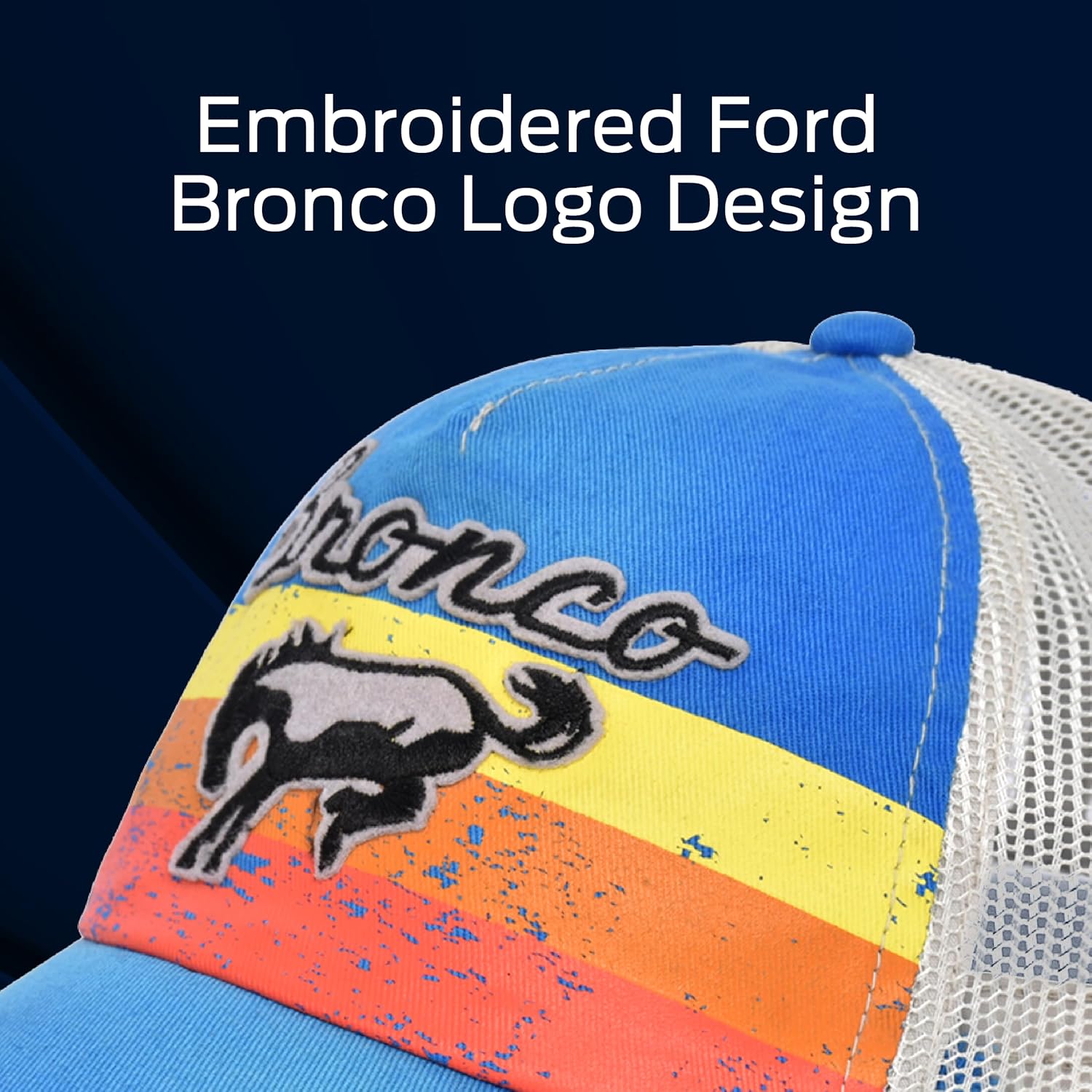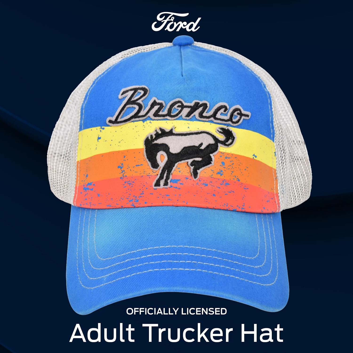 Ford Bronco Embroidered Logo Washed Cotton Adjustable Trucker Hat with Curved Brim, Royal Blue, One Size