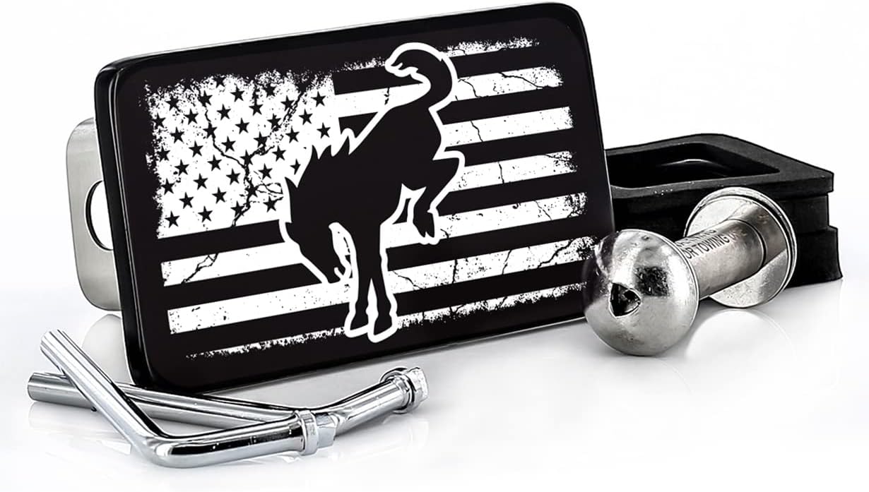 The hitch cover emblem is made from black powder coated solid brass. UV cured ink is Eco-Friendly with no emisions and has superior outdoor durablity. The 2” inch hitch post & all of its components are made from stainless steel. The hitch post comes with an anti-theft locking pin to prevent theft.