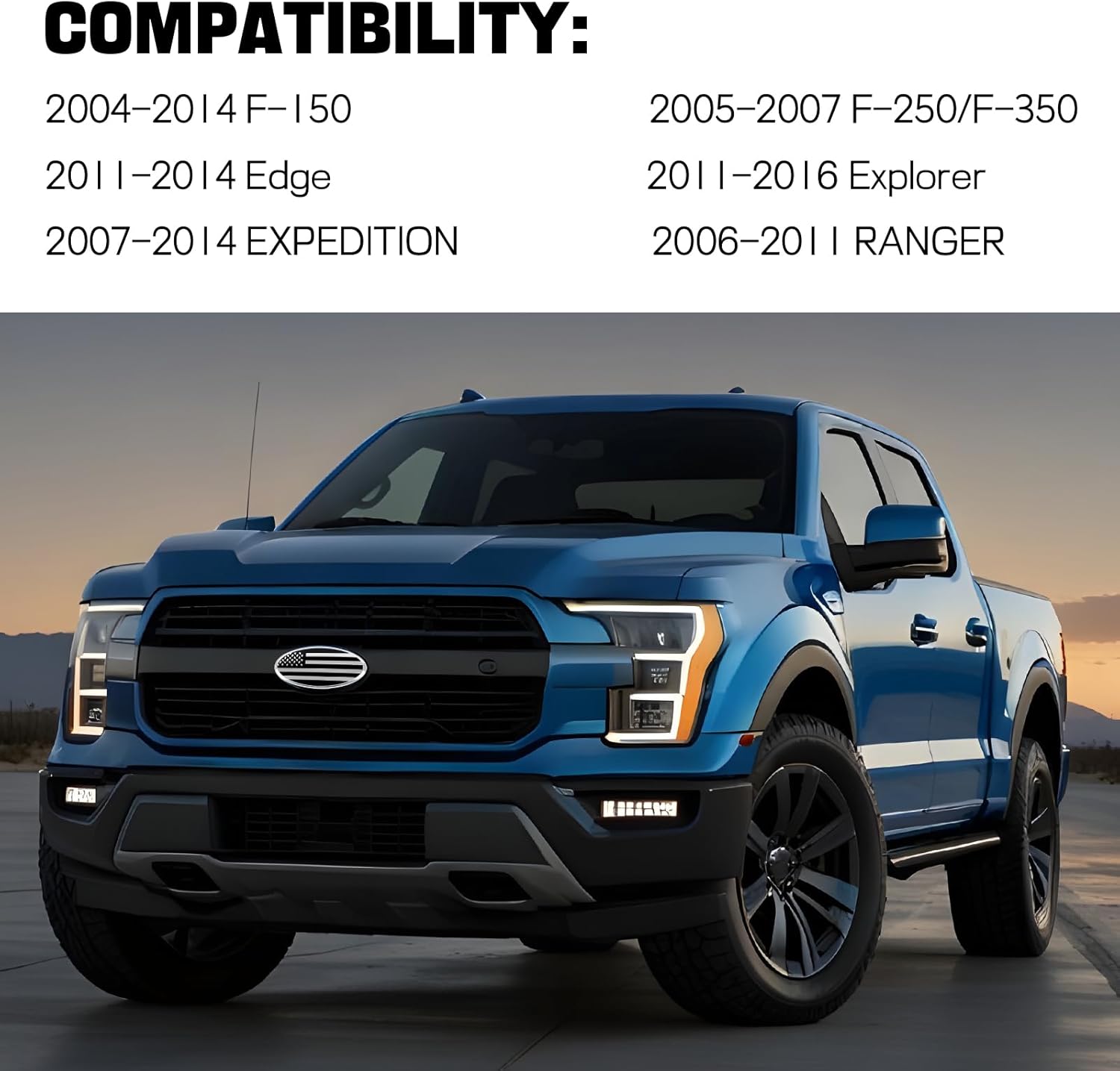 【Size & Compatibility】: This oval front grill emblem measures 8.86×3.46 inches and fits 2004-2014 F-150, 2005-2007 F-250/F-350, 2011-2014 Edge, 2011-2016 Explorer, 2007-2014 EXPEDITION, 2006-2011 RANGER and more. Before ordering , please check the size for proper fitment.