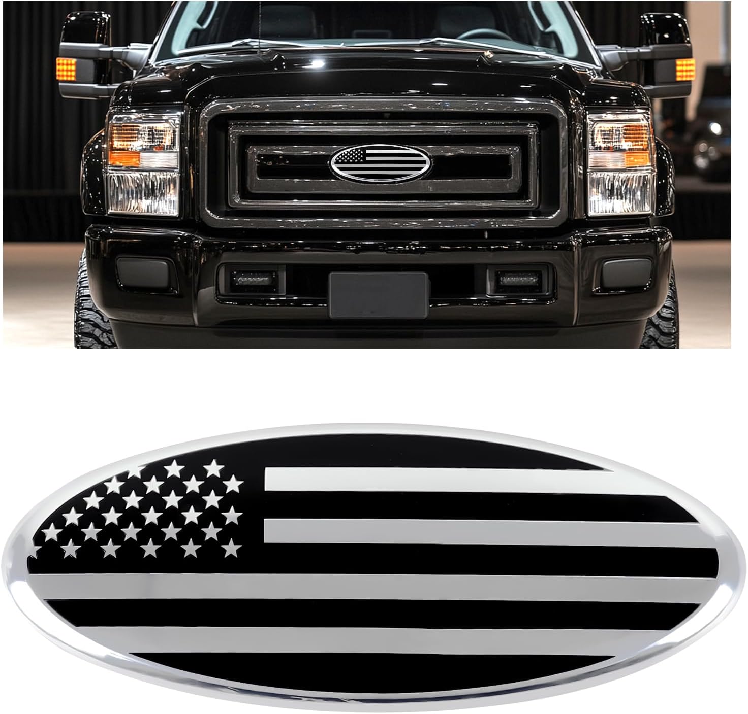 Front Grille American Flag Emblem, 9 Inch US Flag Oval Emblem, Aluminum Front Grill Rear Tailgate Badge Nameplate Replacement for F150 F250 F350, 11-14 Edge, 11-16 Explorer