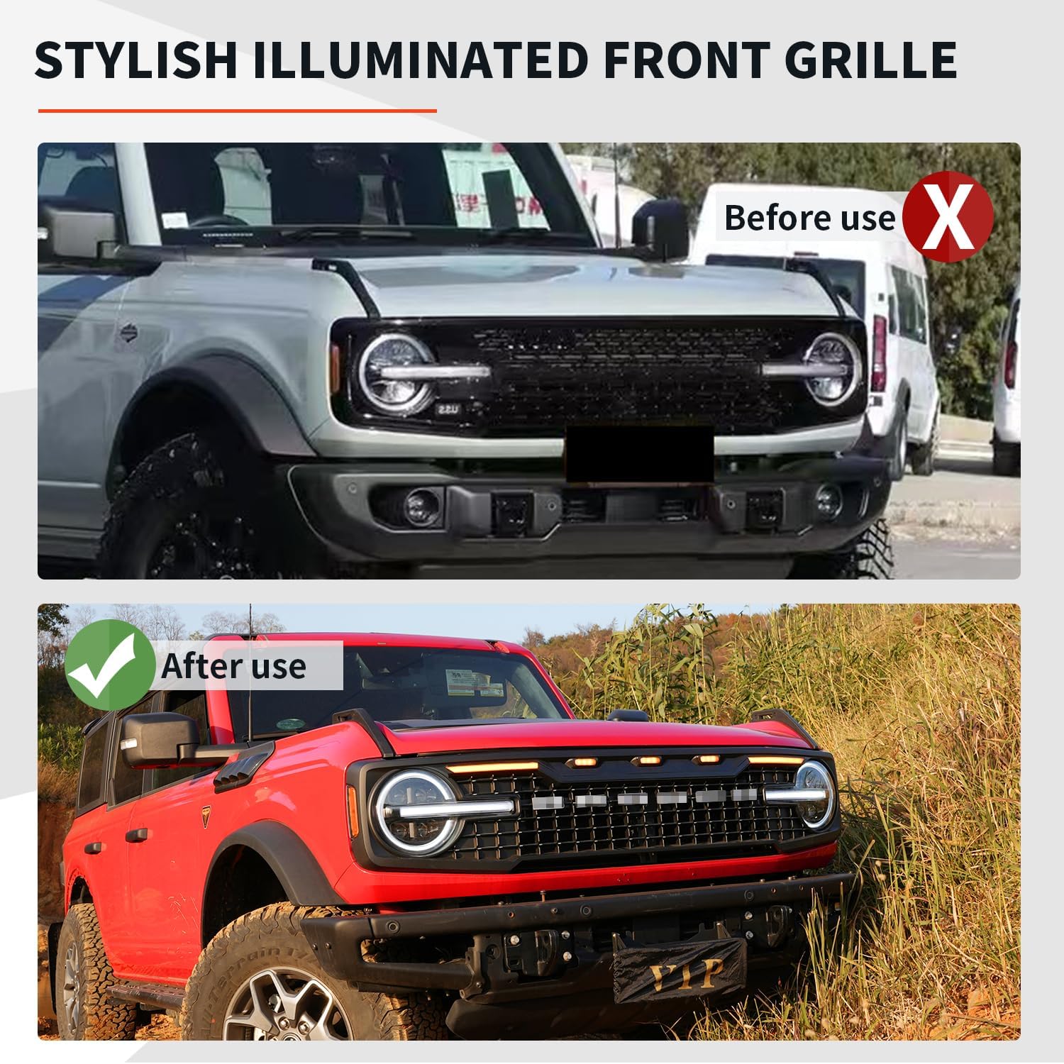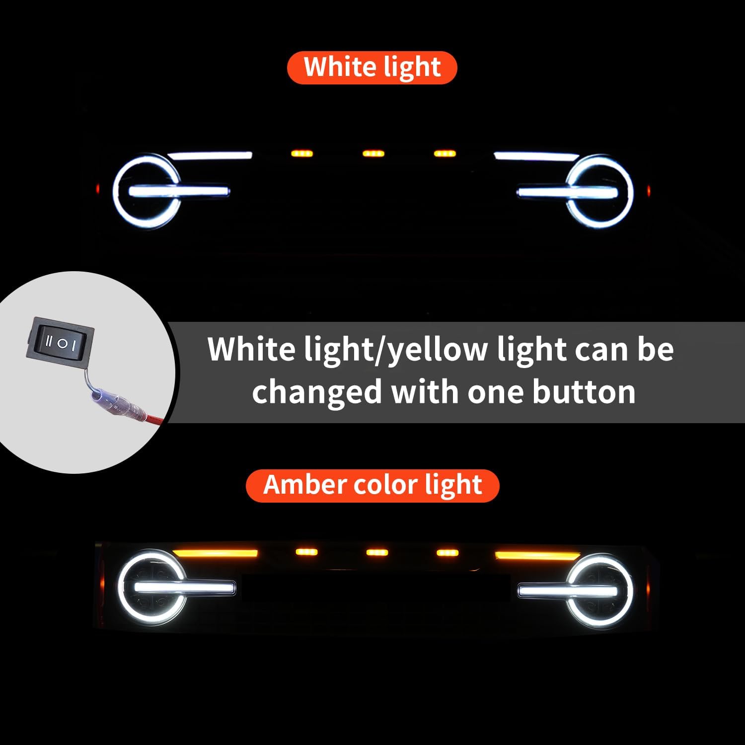 Style Upgrade: This grille has three built-in amber LED lights and two additional light bars, which can be switched between white and amber at will. At the same time, the design of the grille has been upgraded to make it more unique and aggressive