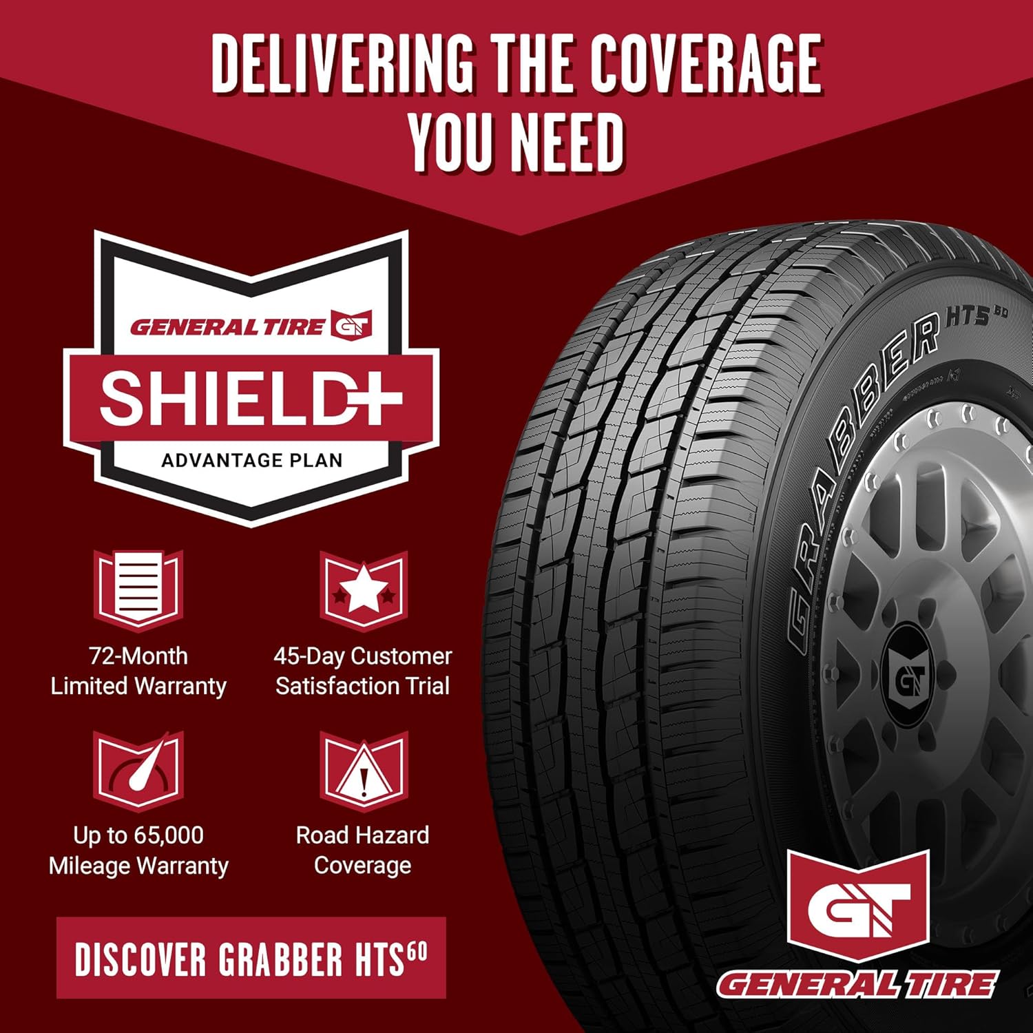 The General Grabber HTS60 is a long-lasting, all-season touring tire for crossovers, light trucks, and SUVs that is backed by up to 65,000-miles of limited manufacturer tread life coverage. Built for year-round traction, the Grabber HTS60 features General’s Duragen Technology that enhances strength and durability, delivers cut-and-chip resistance, and extends tread life.