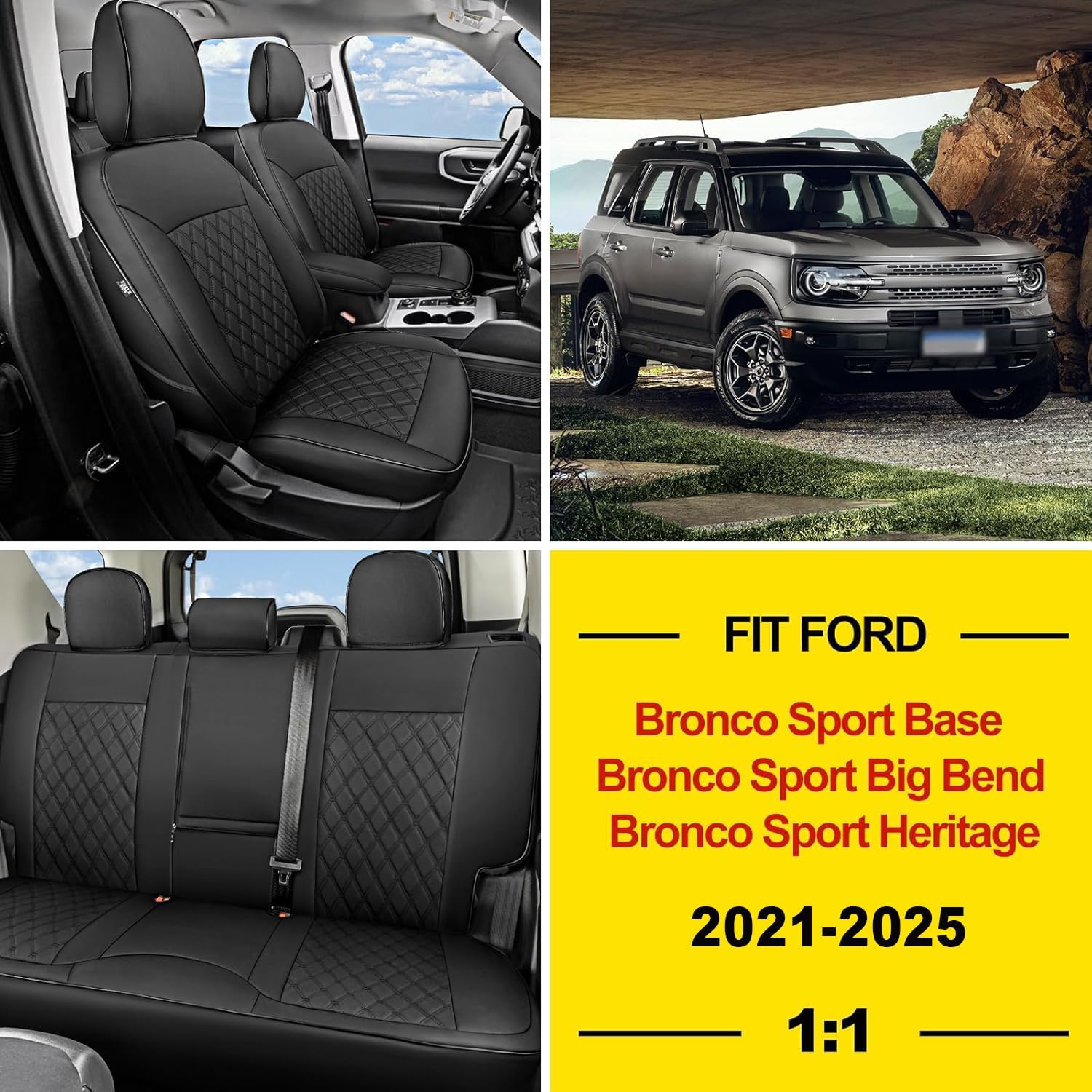 GIANT PANDA Customized fit Ford Bronco Sport Seat Covers 2021-2025, for Sport Base, Big Bend, Heritage. Faux Leather (Black)