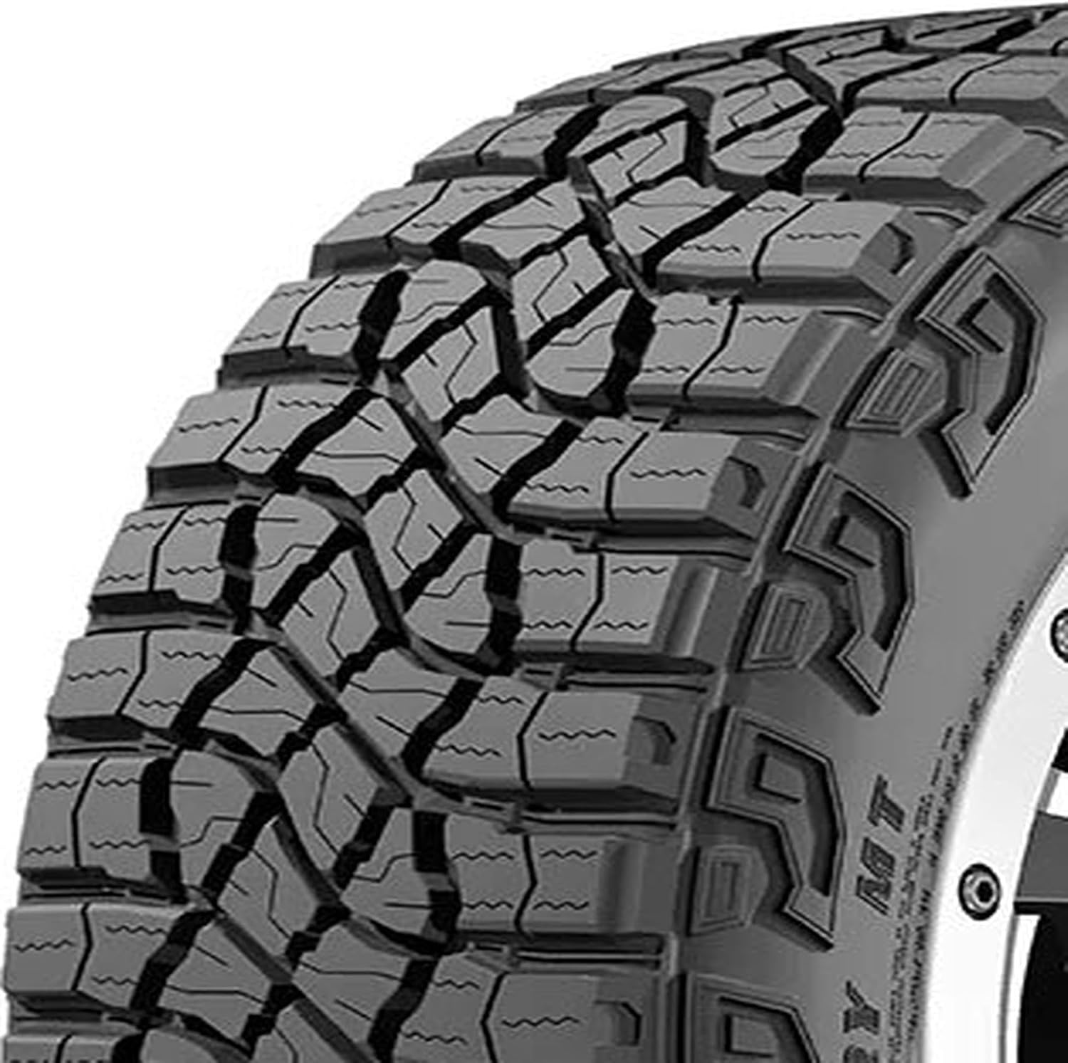 The Goodyear Wrangler Territory MT is a mud terrain tire that’s used as Original Equipment on select trucks and SUVs. An open tread design promotes self-cleaning of mud, dirt, rocks, stones, and other debris for consistent traction and performance on- and off-road, and the Wrangler Territory MT’s sequenced pitch pattern reduces road noises and vibrations to create a quiet, comfortable ride for drivers and passengers.