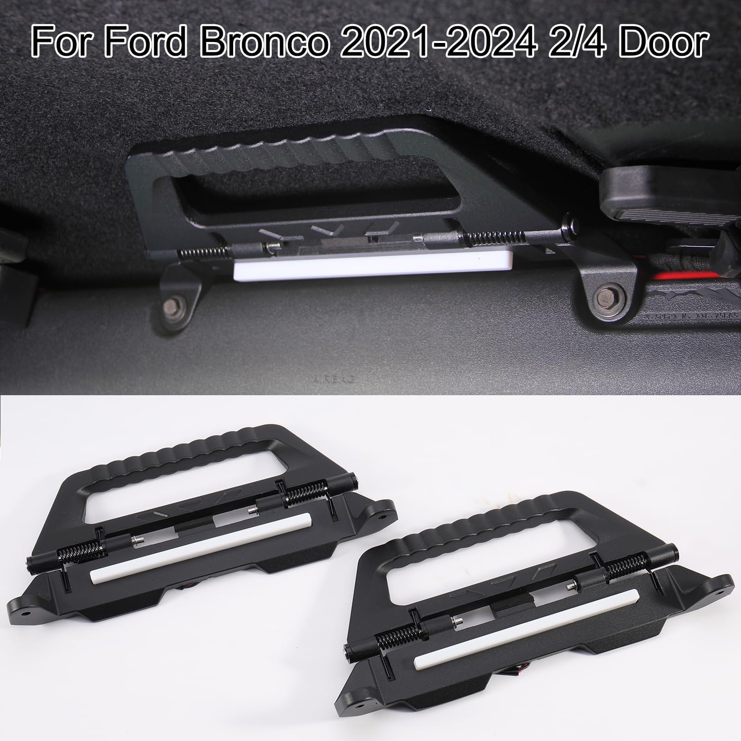 Grab Handles with Dome Lights for 2021 2022 2023 2024 2025 Ford Bronco 2 Door/4 Door Front Row Alloy Grab Handles with LED Dome Lights Flexible Hand Grip for Bronco