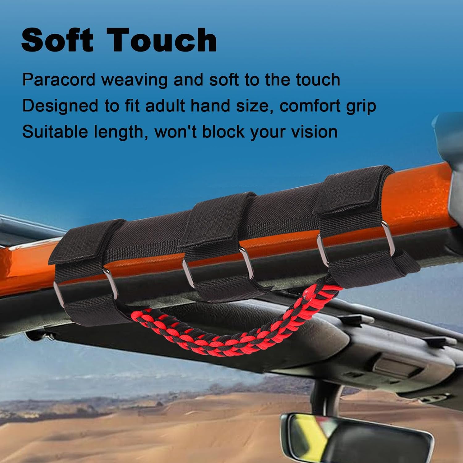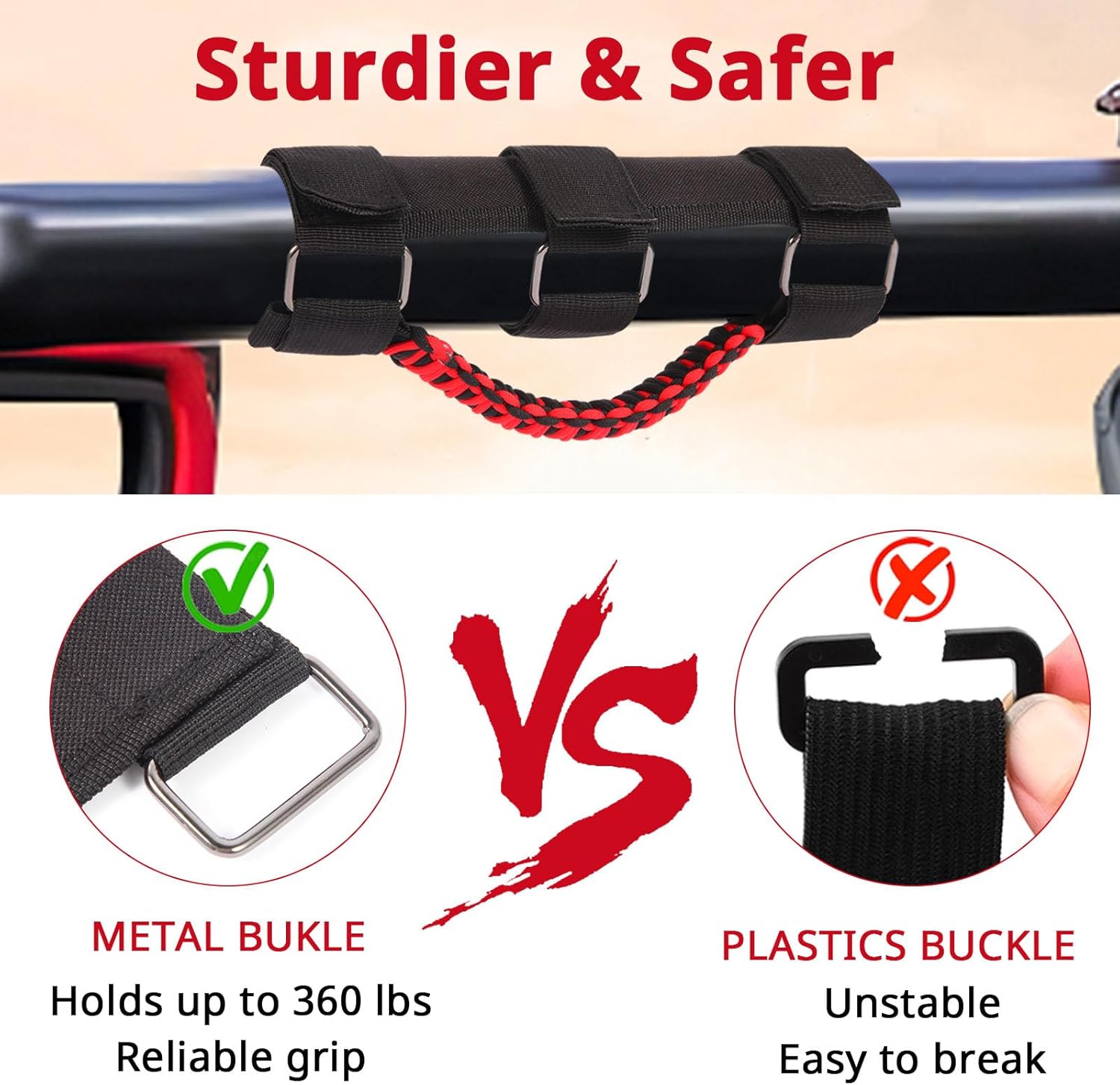 Handles Grab for Jeep, 4 Pack Roll Bar Grab Handles with Metal Buckle Paracord Grip Compatible with Jeep Wrangler 1955-2024 JT JL JK TJ CJ YJ & Gladiator, Fit 2-4Inches Diameter Roll Bar