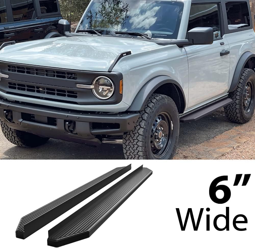 HD Ridez Flat Style Running Board 6″ Black Compatible with Ford Bronco 2021-2025 Sport Utility 2-Door (Nerf Bar Side Steps Side Bars)