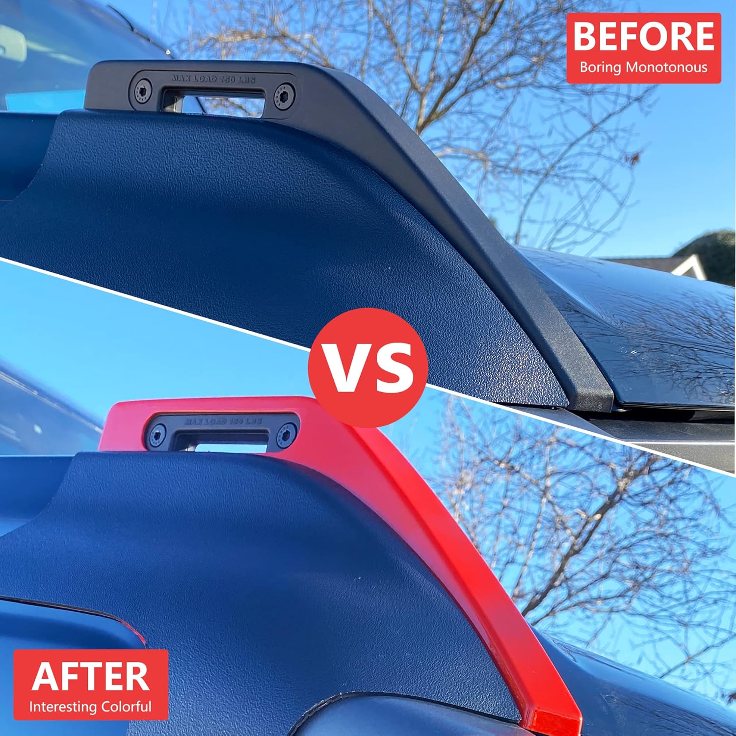 COLORFUL: For Ford Bronco exterior accessories decor cover trim have 7 colors: black, red, green, orange, pink, white, and purple. With graceful lines, smooth surface, and nice color, cover existing scratches, prevent new scratches, offer a new look