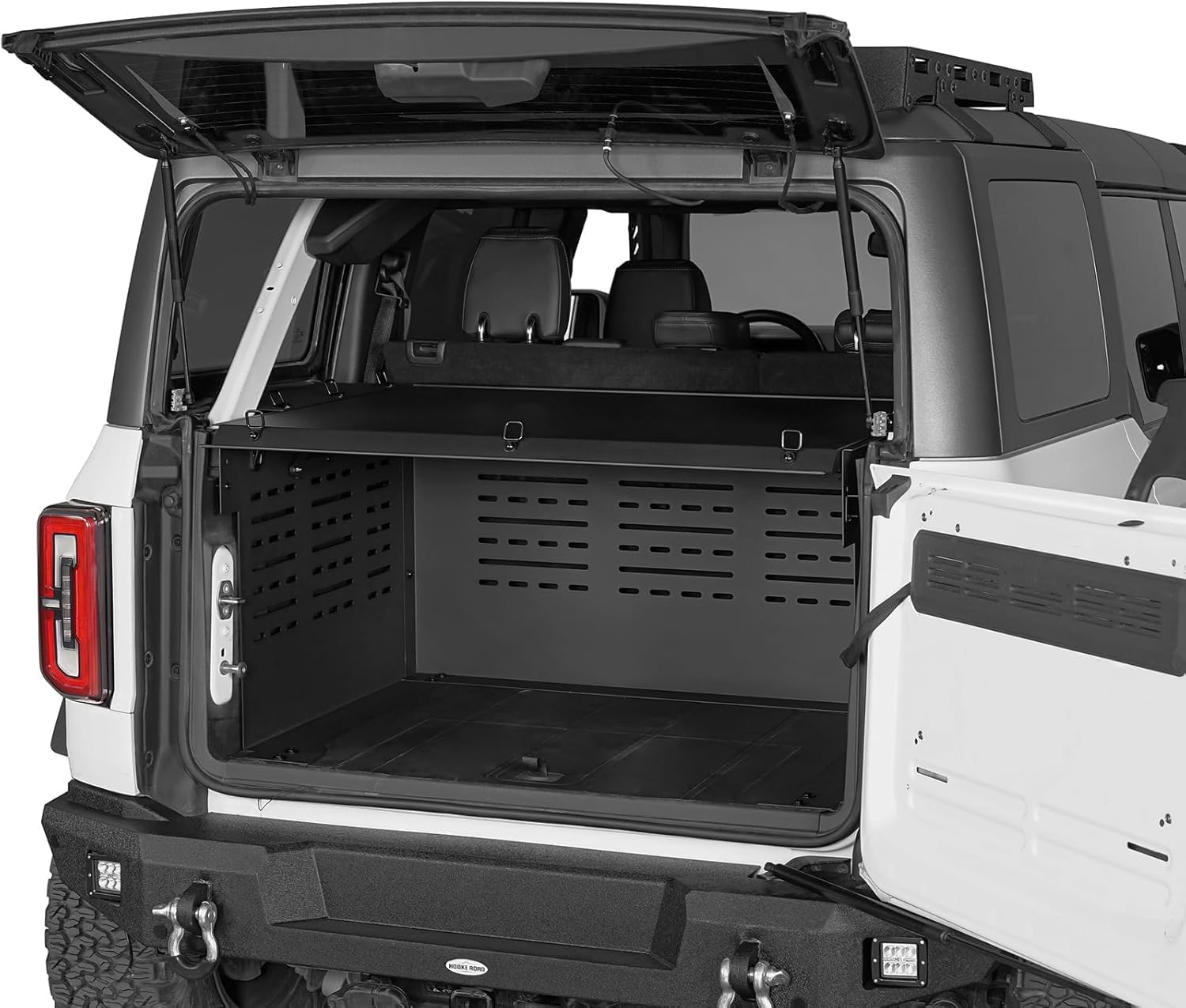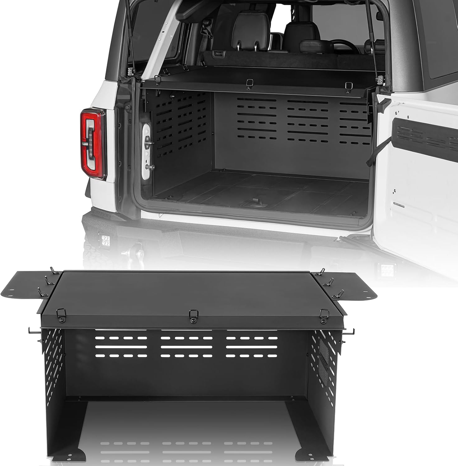 Hooke Road Bronco 4 Doors Rear Cargo Rack Trunk Security Deck Enclosure Luggage Storage Compatible with 2021 2022 2023 2024 2025 Ford Bronco 4-Door Hardtop (Exclude Bronco Sport & Rapot)