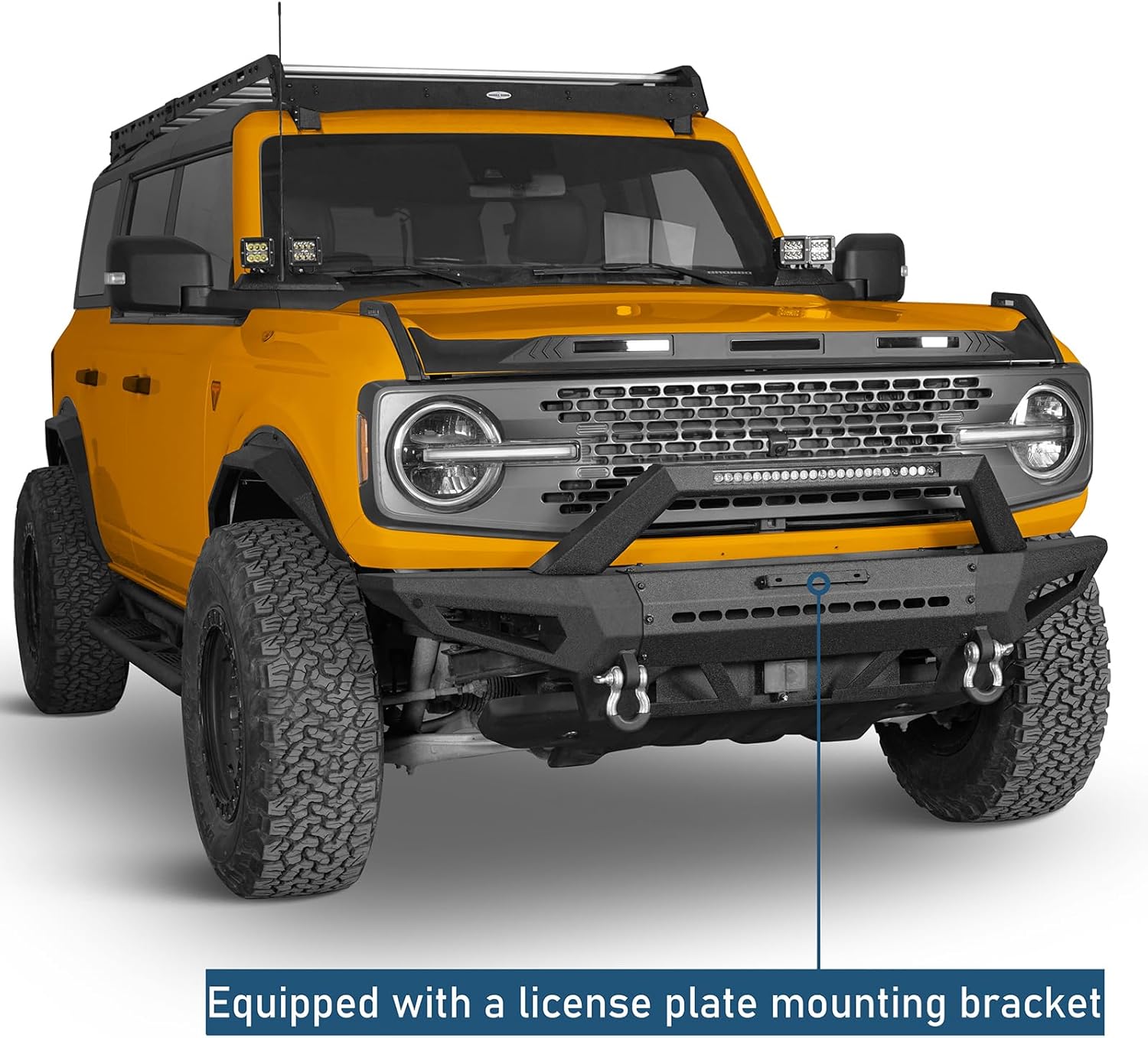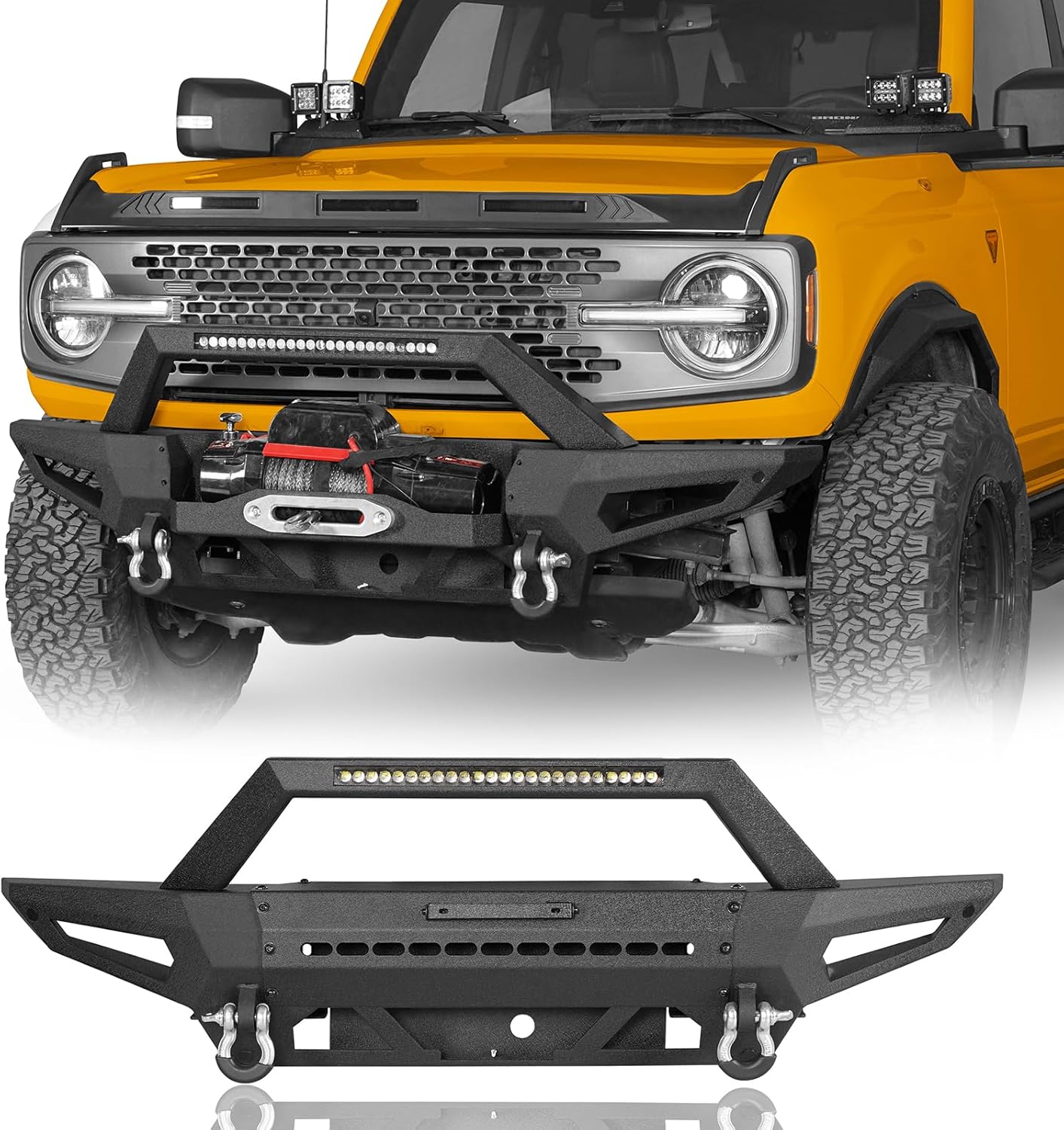 Hooke Road Bronco Front Bumper Compatible with Ford Bronco 2021 2022 2023 2024 2025 (Excluding Sport & Raptor) – w/Winch Plate & D-rings & LED Lights