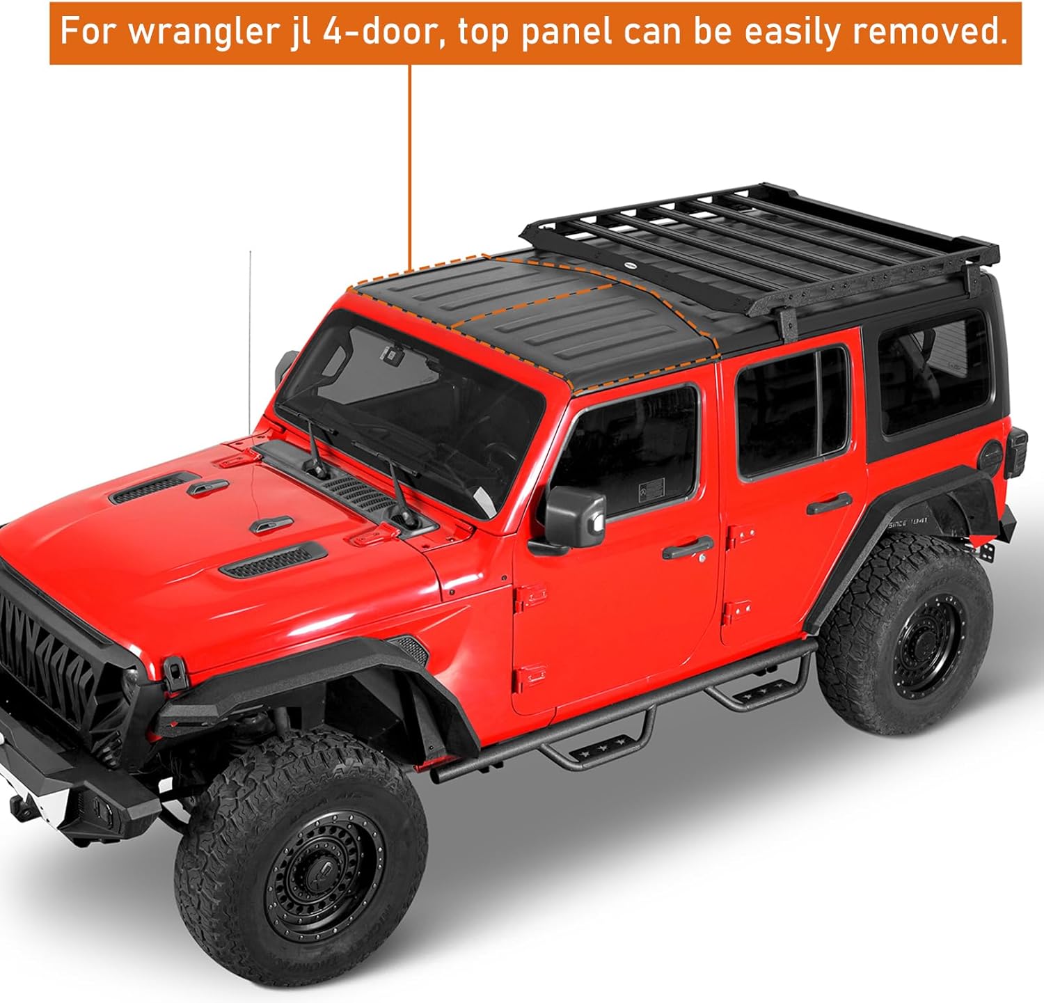 【Practical Design】- Sleek, slim low-profile design improves aerodynamics with a front wind fairing. Easily removable front top panels for JL 4-door models after installation