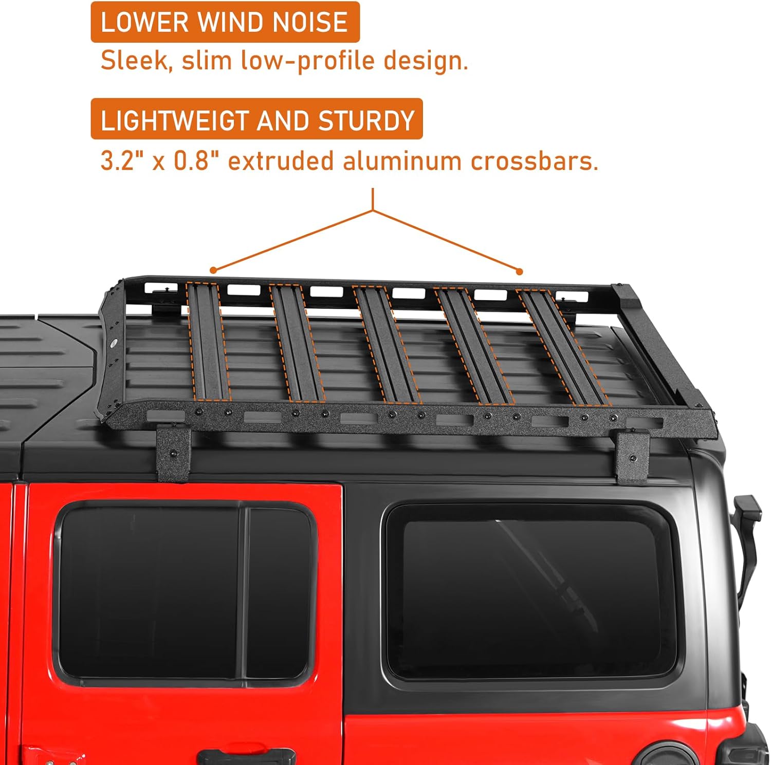Hooke Road Gladiator Roof Rack with Aluminum Crossbars for 2018-2025 Jeep Wrangler JL 2/4 Doors & Gladiator JT (Hard Top Only), Sturdy Cargo Basket Storage Rack for Overlanding and Camping Trips