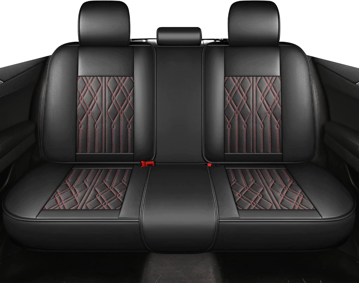 Huidasource Leather Back Row Seat Covers, Waterproof Rear Split Bench Car Seat Covers, Vehicle Seat Cushion Cover Protector Universal Fit for Most Cars Sedan SUV Pickup Truck(Back Row/Black&Red)