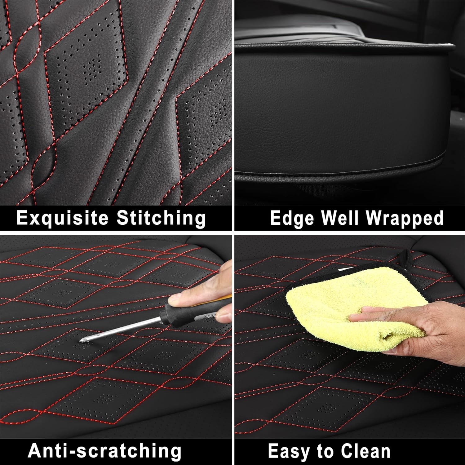 ►【Superior Compatible】This rear split seat covers is airbag, baby safety seat and seat buckles compatible, it will not effect the original functions of your vehicle. Meticulous sewing and unique appearance design adds a sence of modern and sleek to your auto interior.