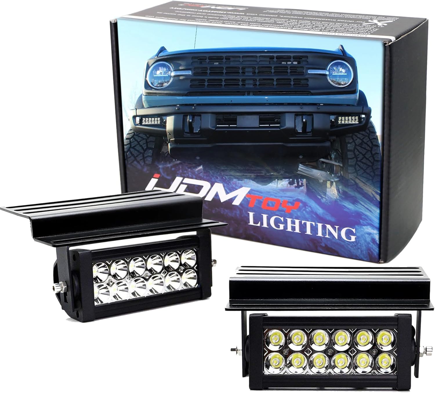 iJDMTOY Modular Bumper Mount High Power 7.5-Inch Double-Row Mini LED Light Bar Kit Compatible with 2021-up Ford Bronco, (2) 36W High Power LED Lightbar, Mounting Brackets & On/Off Switch Wiring Kit