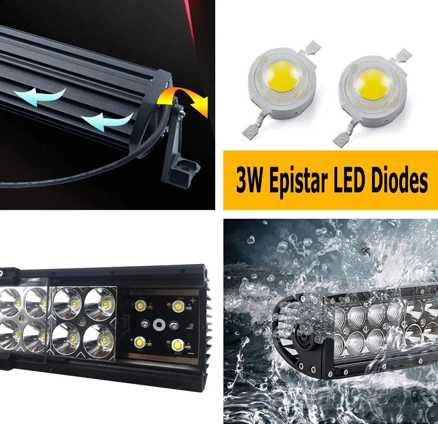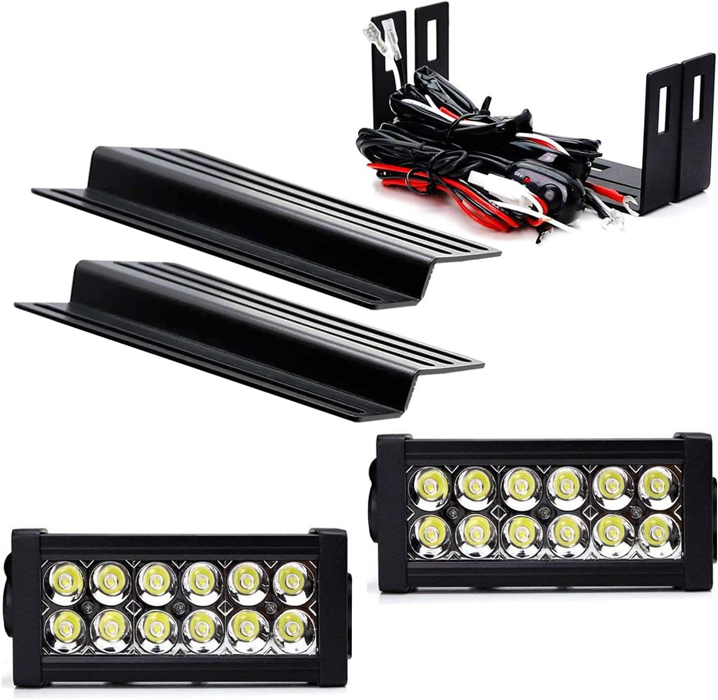 Complete twin LED light bar kit includes 2 pieces of xenon white 36W 7.6″ high power spot beam double-row LED lightbars, a set of heavy duty black powder coated steel under Modular Bumper mount brackets, plus a set of relay wire harness with toggle on/off switch