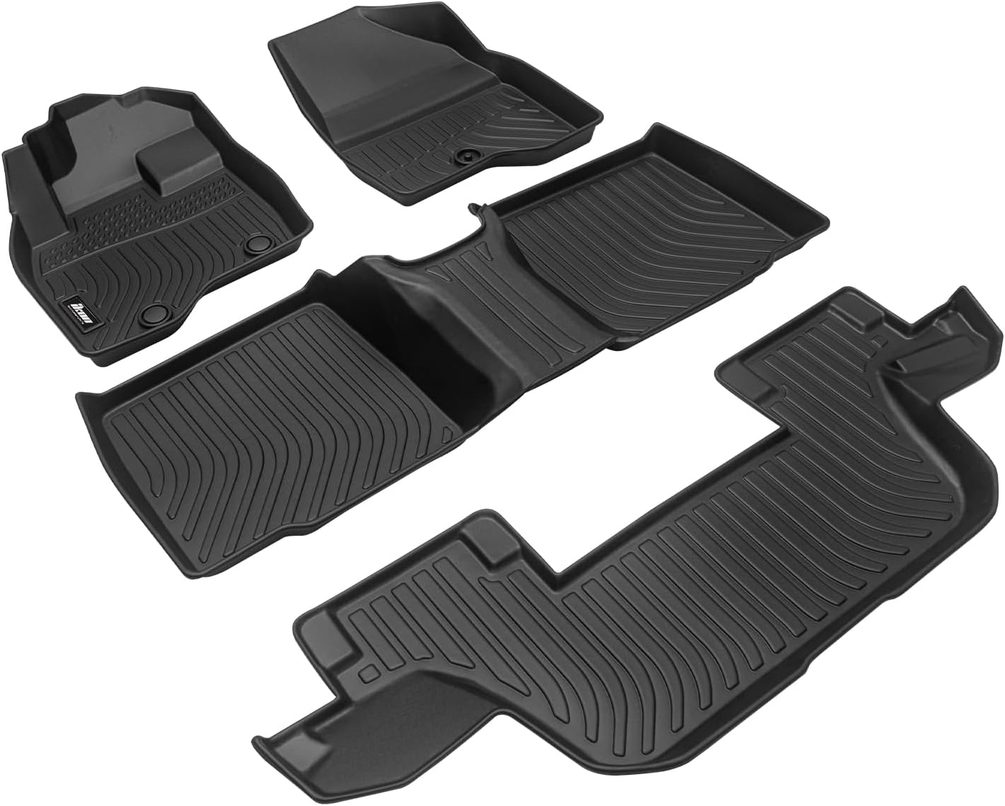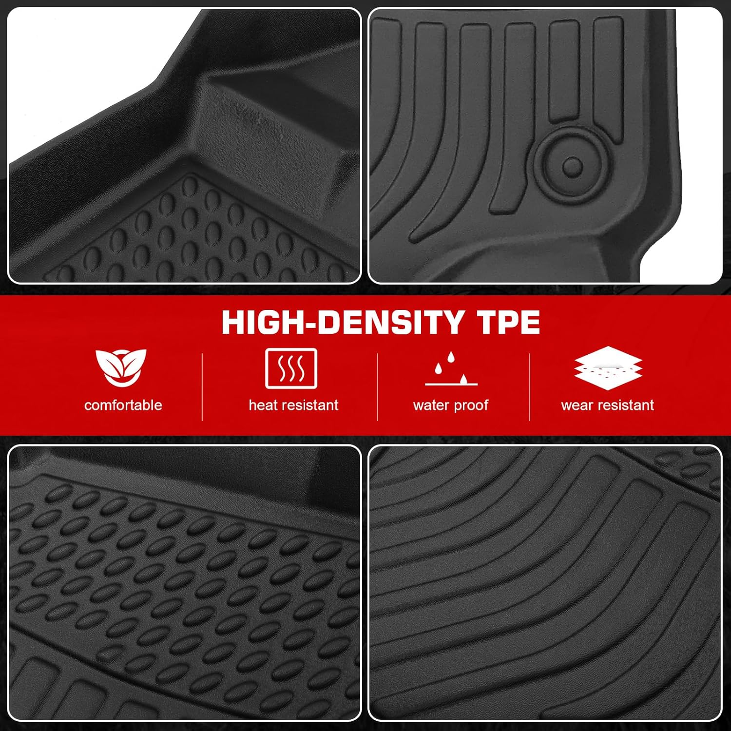 IKON MOTORSPORTS 3D TPE Floor Mats, Compatible with 2015-2019 Ford Explorer, All Weather Waterproof Anti-Slip Floor Liners, Front & 2nd Row Full Set Car Interior Accessories, Black