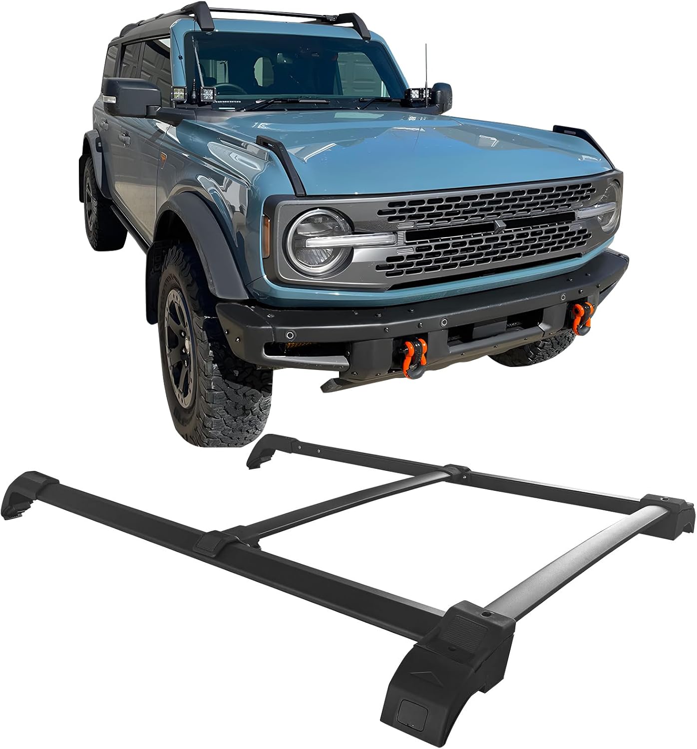 Be the first to review “IKON MOTORSPORTS, Roof Rack W/Side Rails Bars Compatible with 2021-2025 Ford Bronco All Models, Black Top Roof Rack Cross Bar Cargo Luggage Carrier Aluminum” Cancel reply