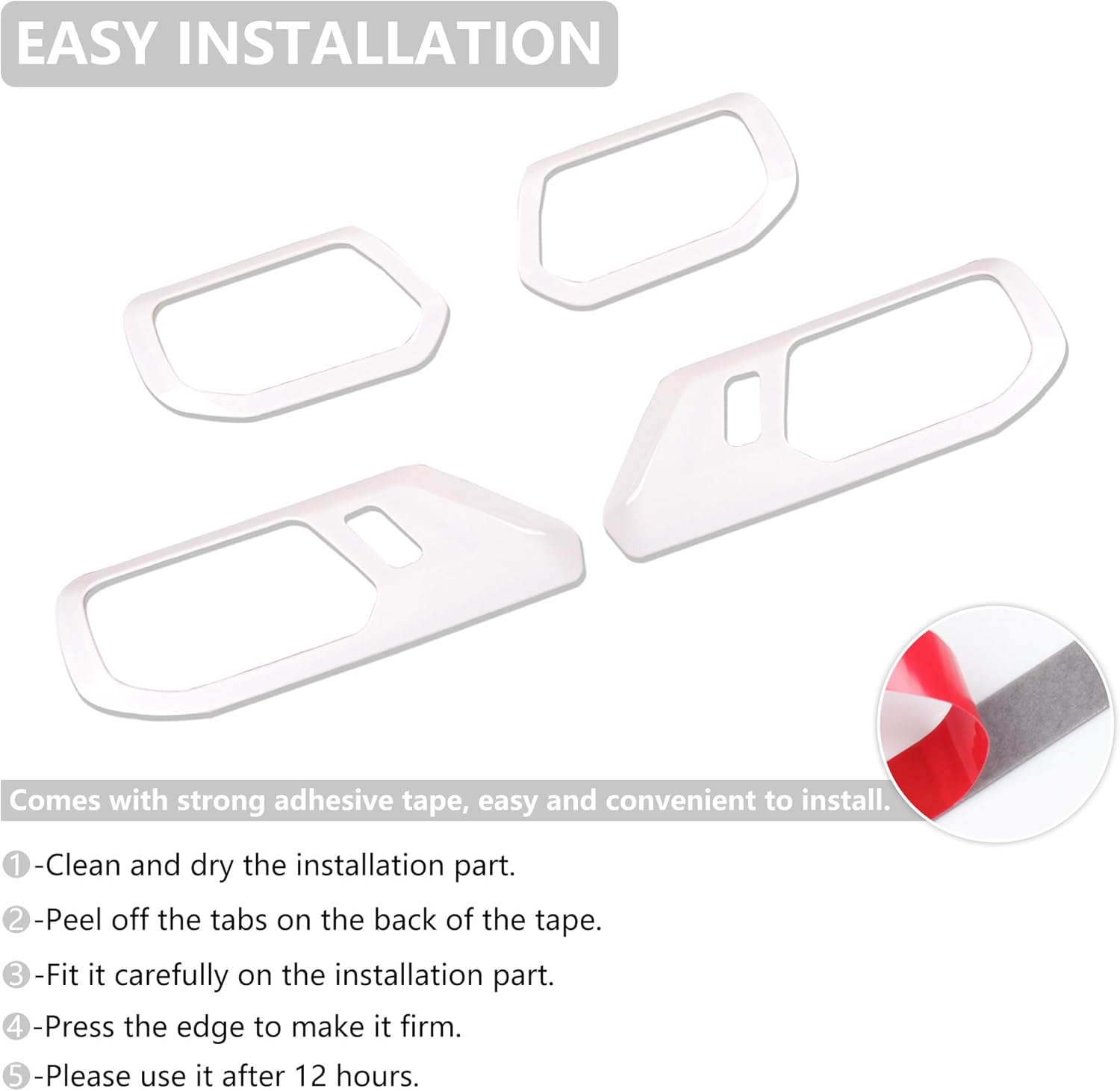 Inner Door Handle Scratch Protector Cover Frame Trim Compatible with 2021 2022 2023 2024 2025 Ford Bronco Interior Accessories Door Switch Handle Decoration Sticker Decor Decal 4 Pack White