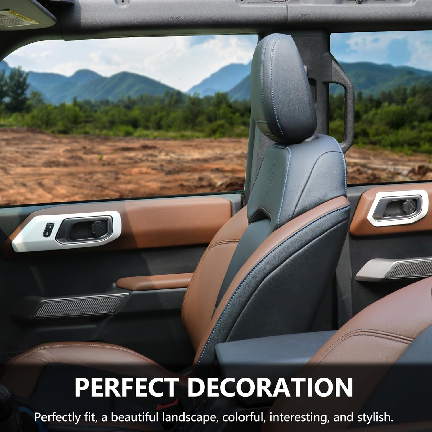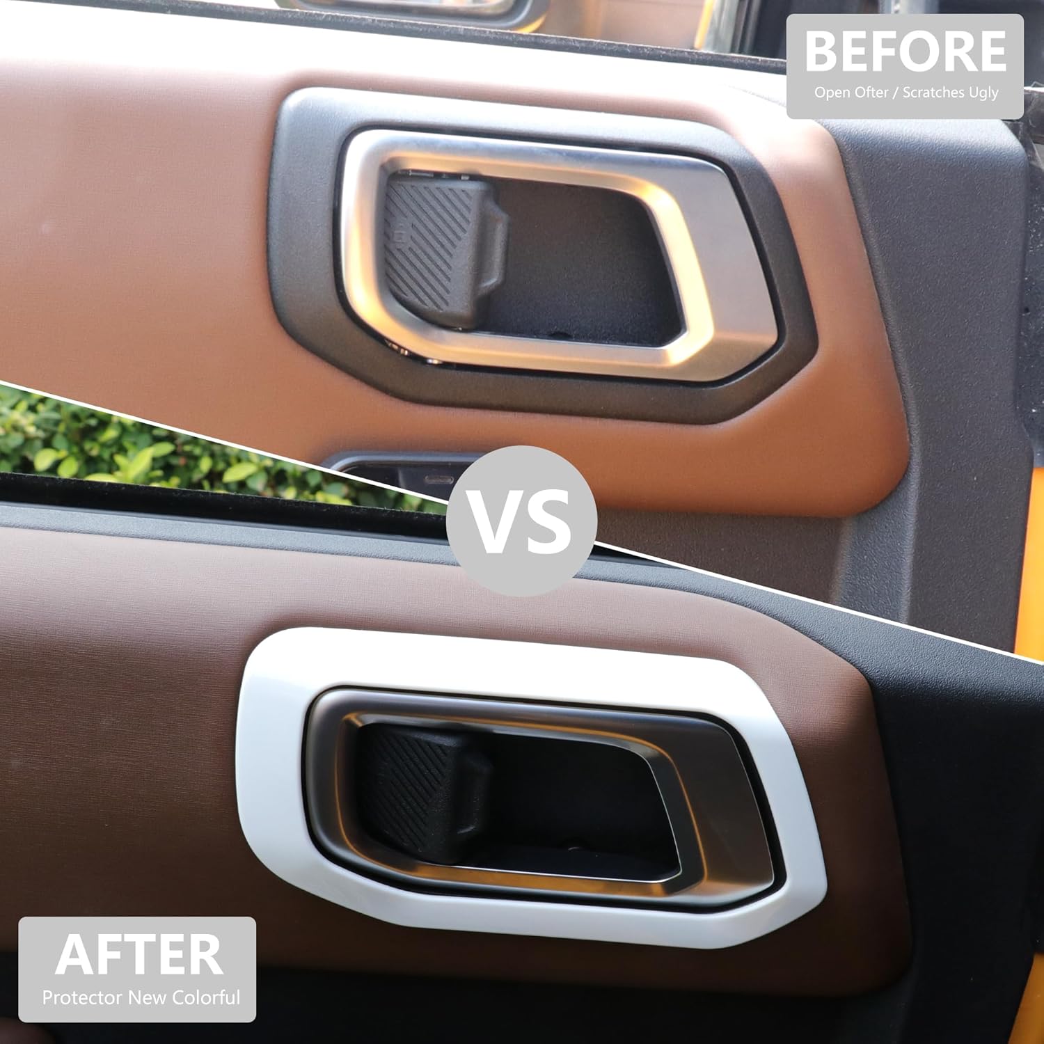 APPLICABLE CAR MODELS: Inner door handle covers are compatible with 2021 2022 2023 2024 2025 New Ford Bronco 2/4 Door. CAUTION!!! NOT FOR BRONCO SPORT