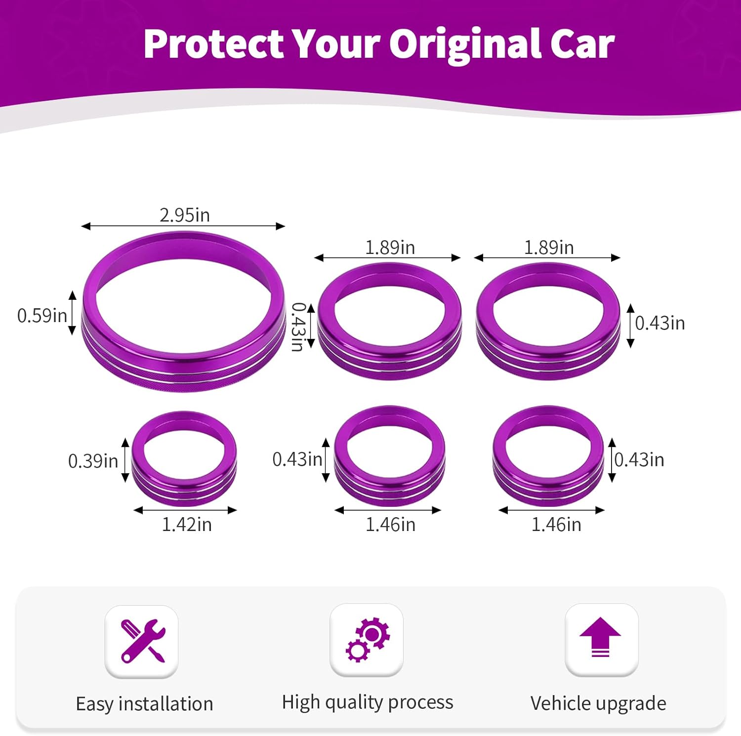 Jeliker for Bronco Purple AC Control Radio Knob Cover Trim Rings, Headlight Switch Knob Cover for Ford Bronco 2021 2022 2023 Purple Interior Accessories 6pcs(NOT for Sport)