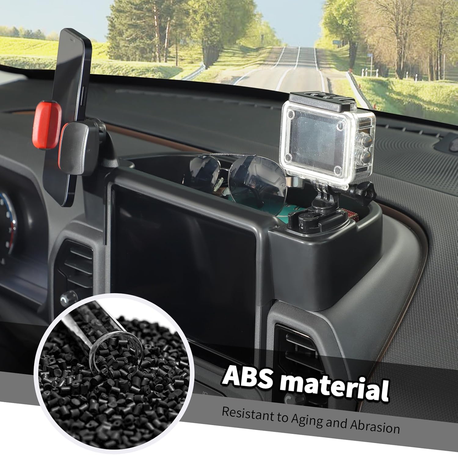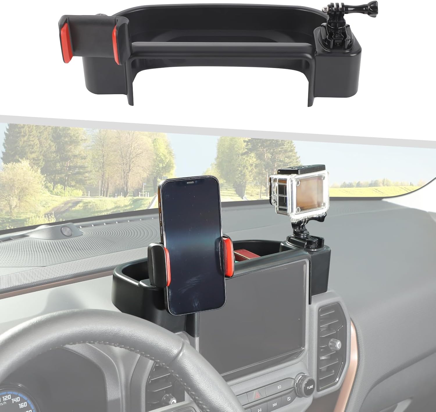 Jimen Fit for Ford Bronco Sport 2021-2024, Center Console Cell Phone Holder Mount Dash Tray Organizer Storage Box