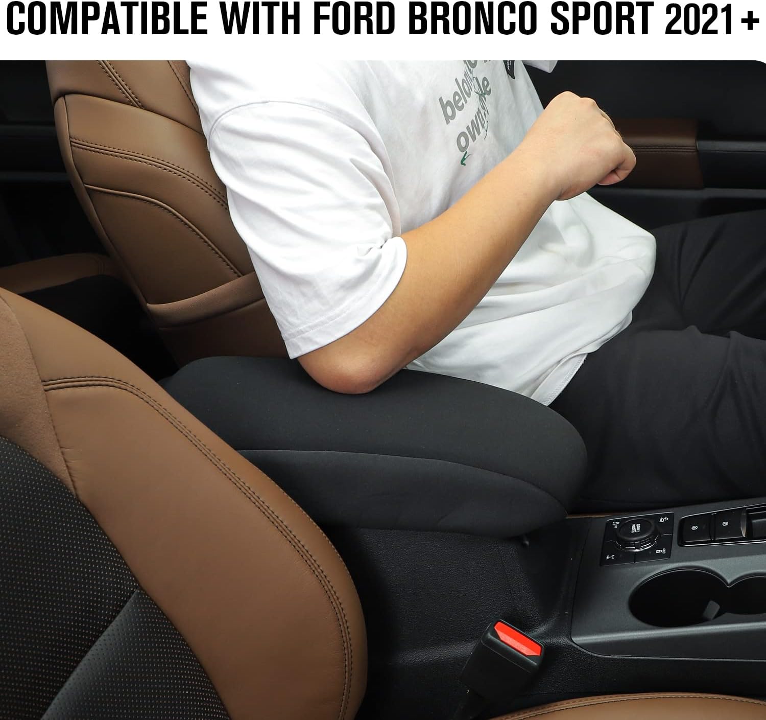Jimen for Bronco Sport Center Console Cover, Armrest Cover Cushion Pad Protector Compatible with Ford Bronco Sport 2021-2023