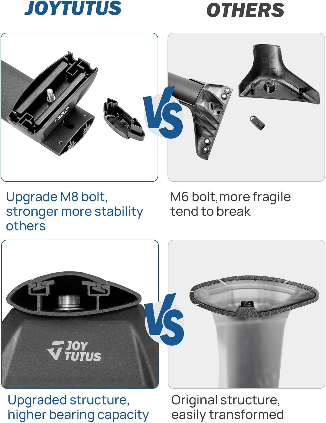 【Improve User Experience:】 The upgraded JOYTUTUS roof rack features improved bolts, nuts, and rubber strips. The thickened screws and nuts are more durable and reduce cross-threading. The enhanced rubber strip design is user-friendly, easy to install