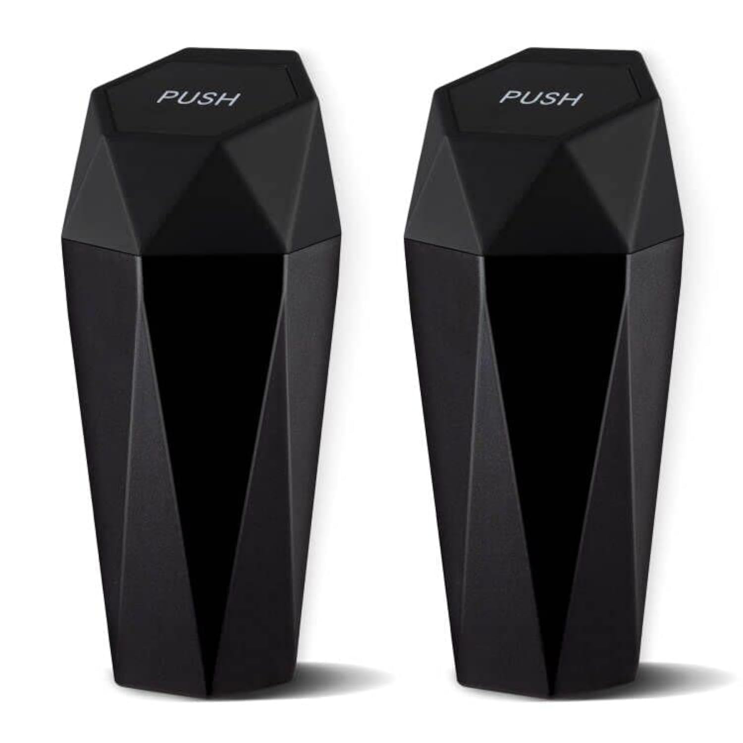 JUSTTOP Car Trash Can with Lid, Diamond Design Small Automatic Portable Trash Can, Easy to Clean, Used in Car Home Office Interior Accessories, 2PCS (Black)