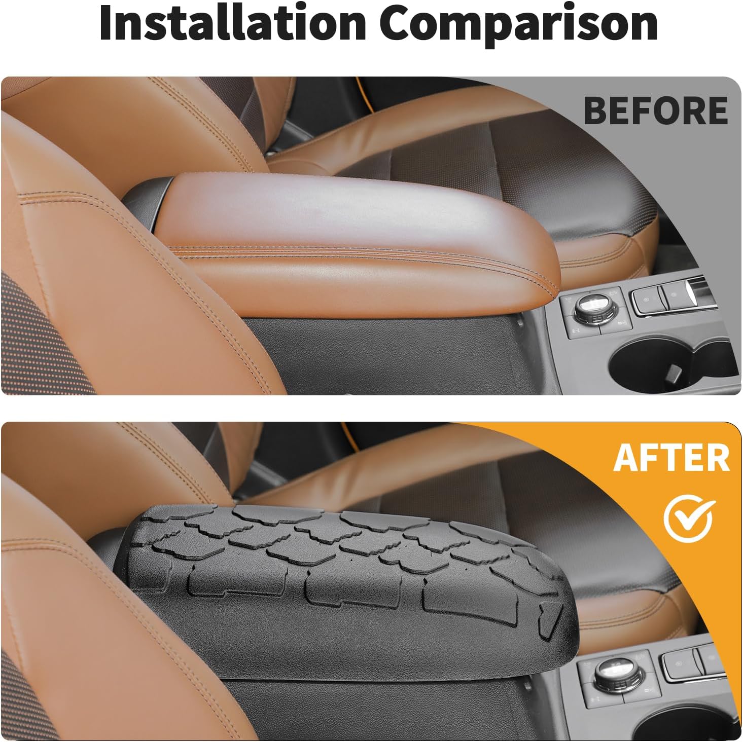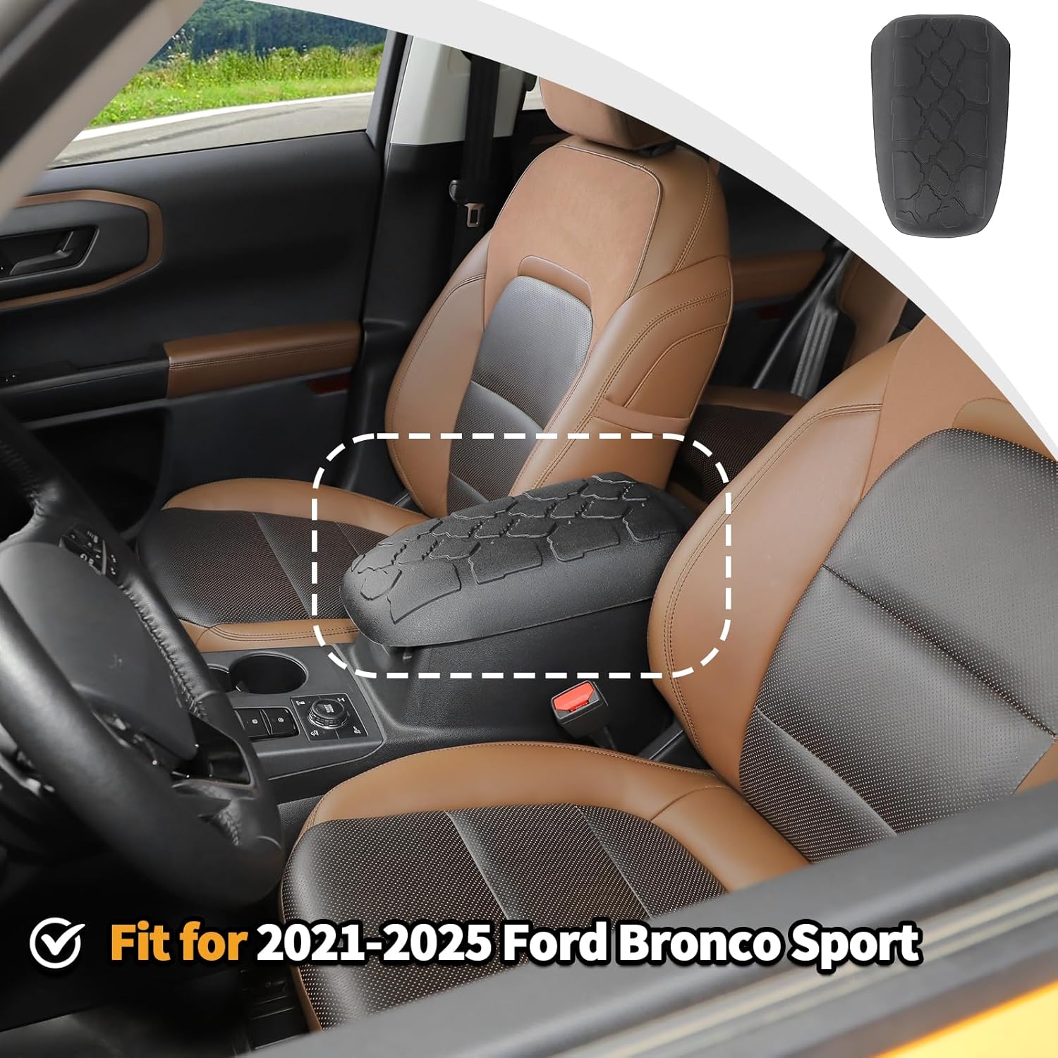 𝐀𝐏𝐏𝐋𝐈𝐂𝐀𝐓𝐈𝐎𝐍:Armrest Cover Case Pad Center Console Cover Decoration Protective Cover Trim Fit for 2021-2025+ Ford Bronco Sport Interior Accessories Black Rubber