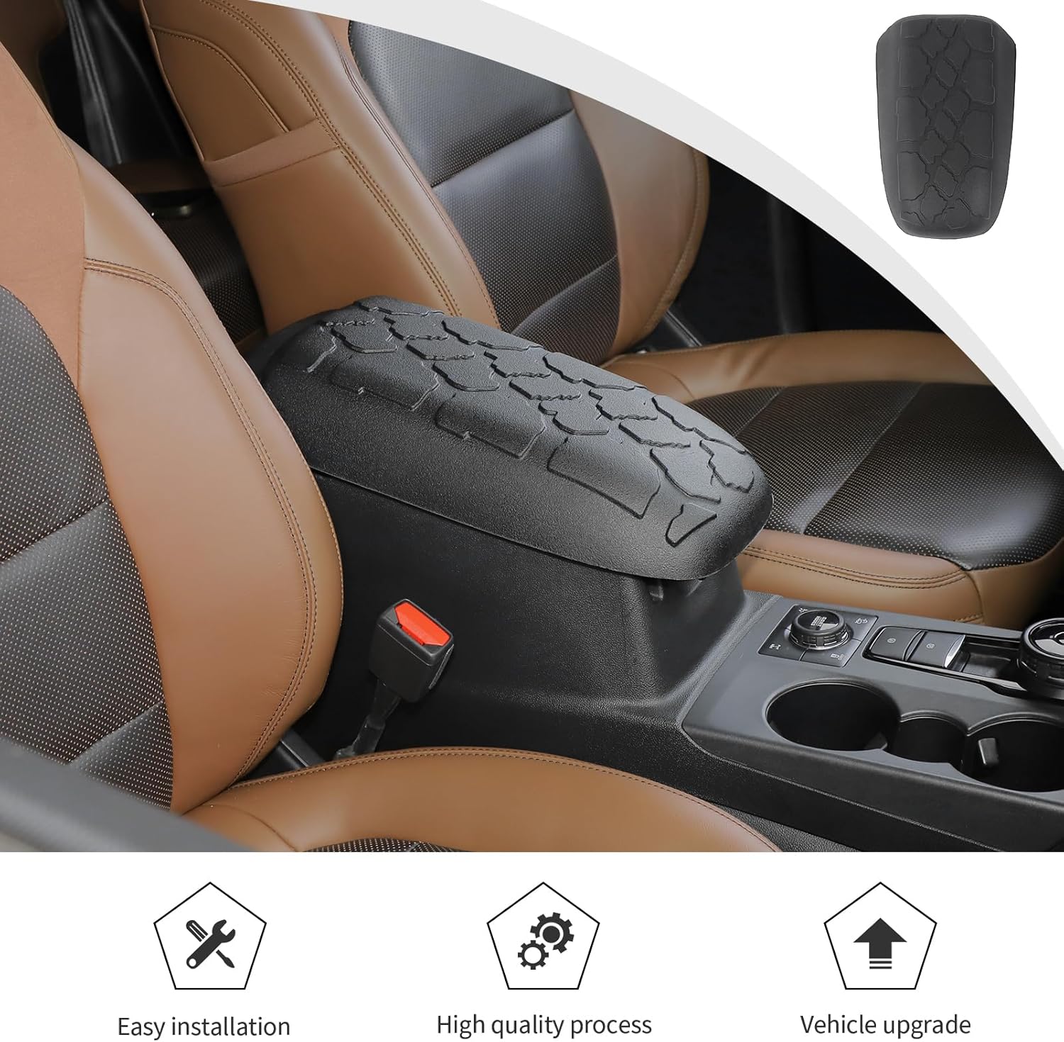 JWWY Armrest Cover Case Pad Center Console Cover Decoration Protective Cover Trim Fit for 2021-2025+ Ford Bronco Sport Interior Accessories Black Rubber