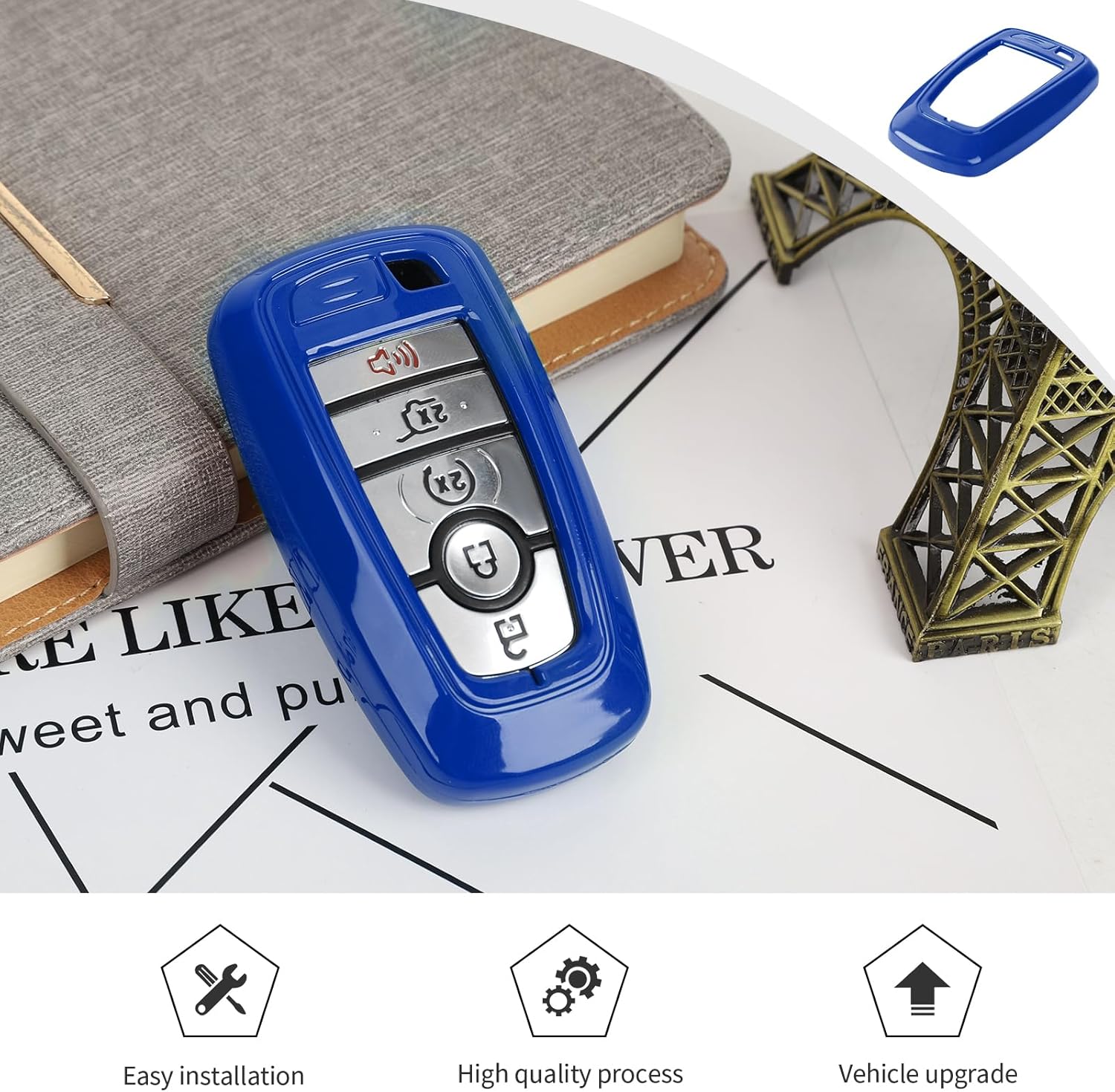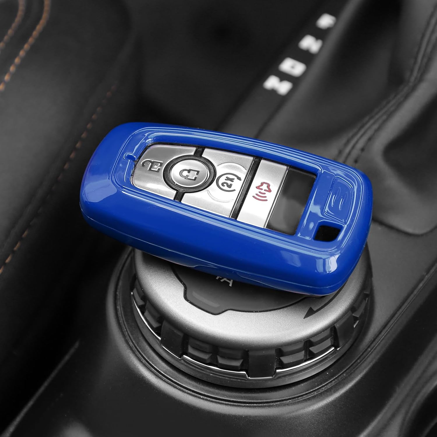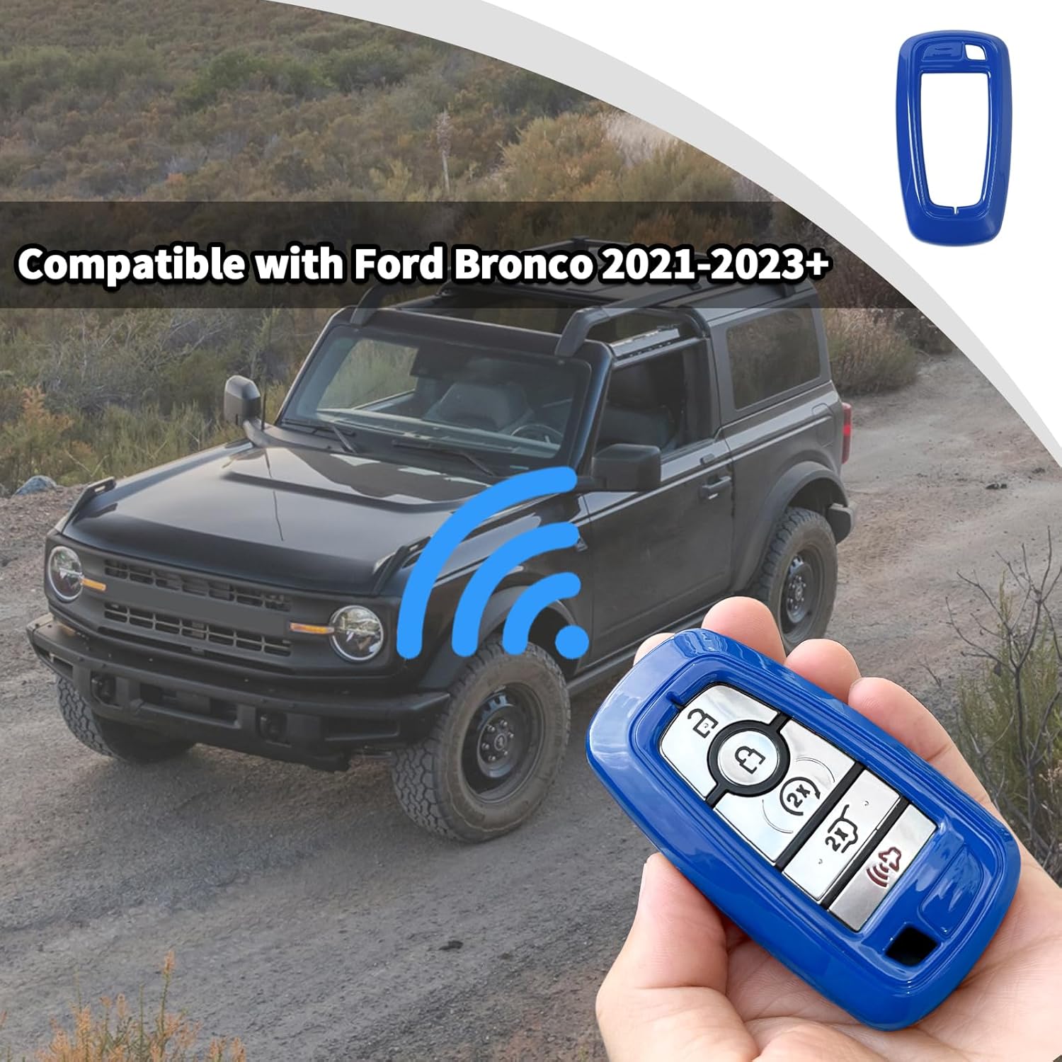 JWWY Bronco Key Fob Cover Case Shell Protection Cover Trim for Ford Bronco Sport, F150 Explorer Accessories 2021 2022 2023 2024+ (ABS, Blue)