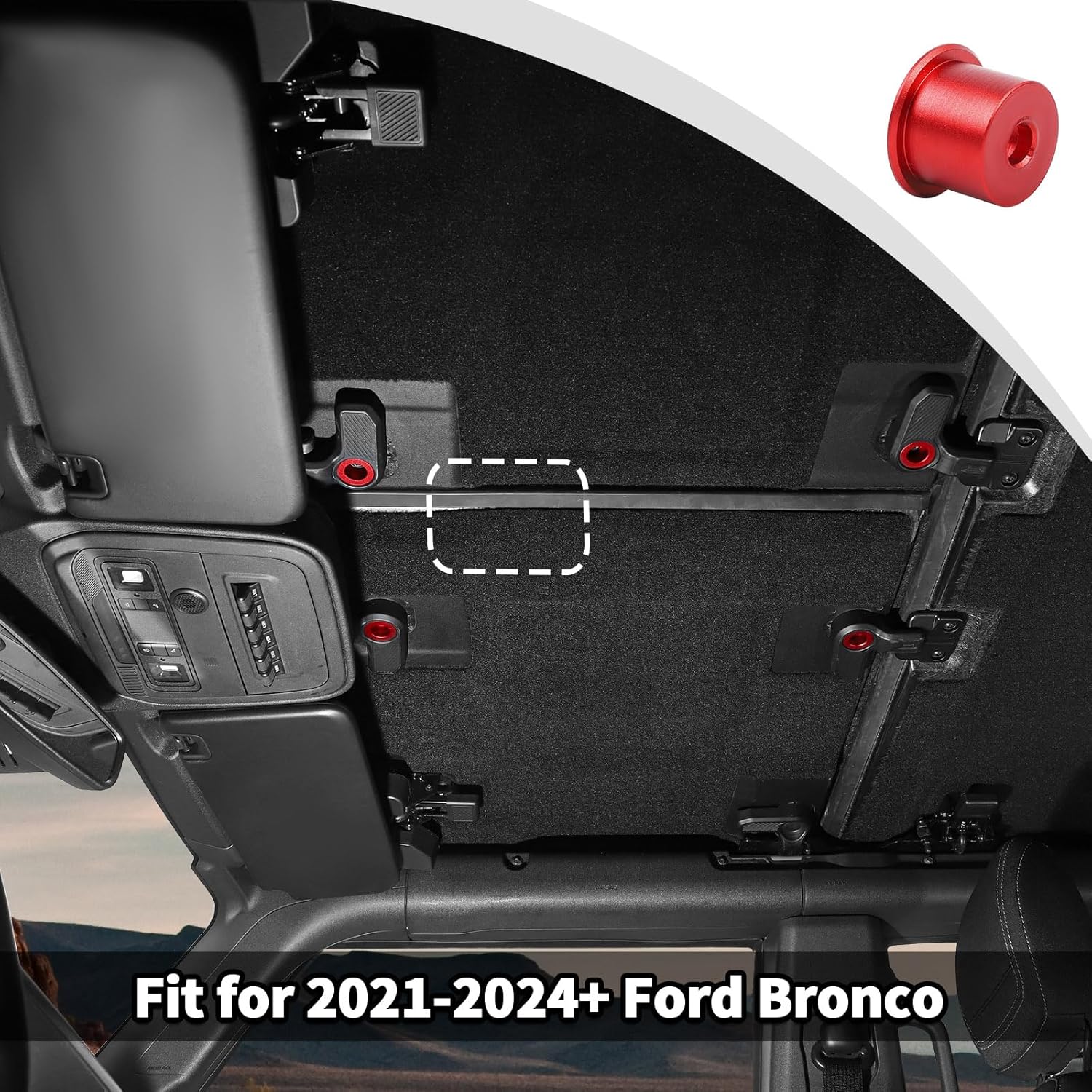 𝐀𝐏𝐏𝐋𝐈𝐂𝐀𝐓𝐈𝐎𝐍:Hardtop Switch Removal Knob Cover Trim Fit for 2021-2024+ Ford Bronco Interior Accessories Aluminum Alloy