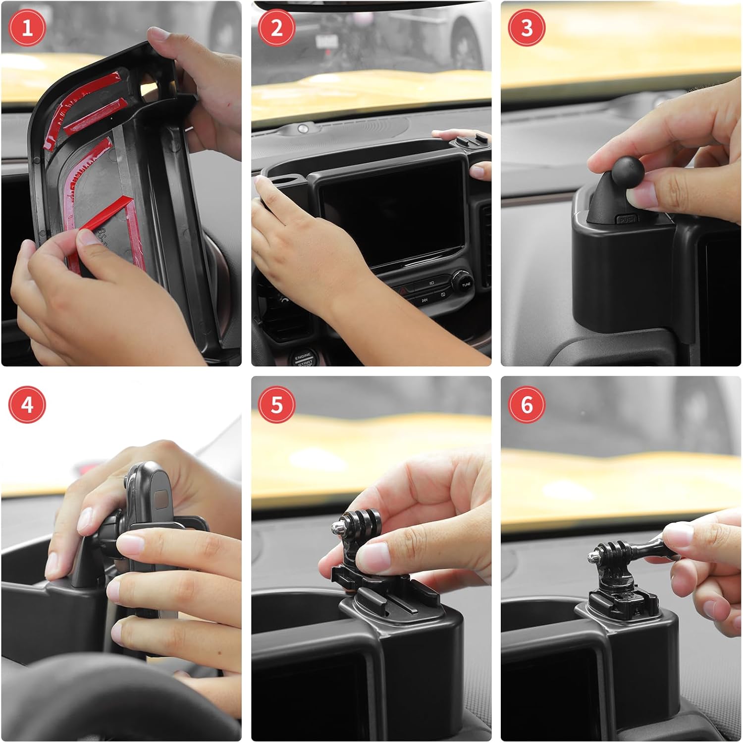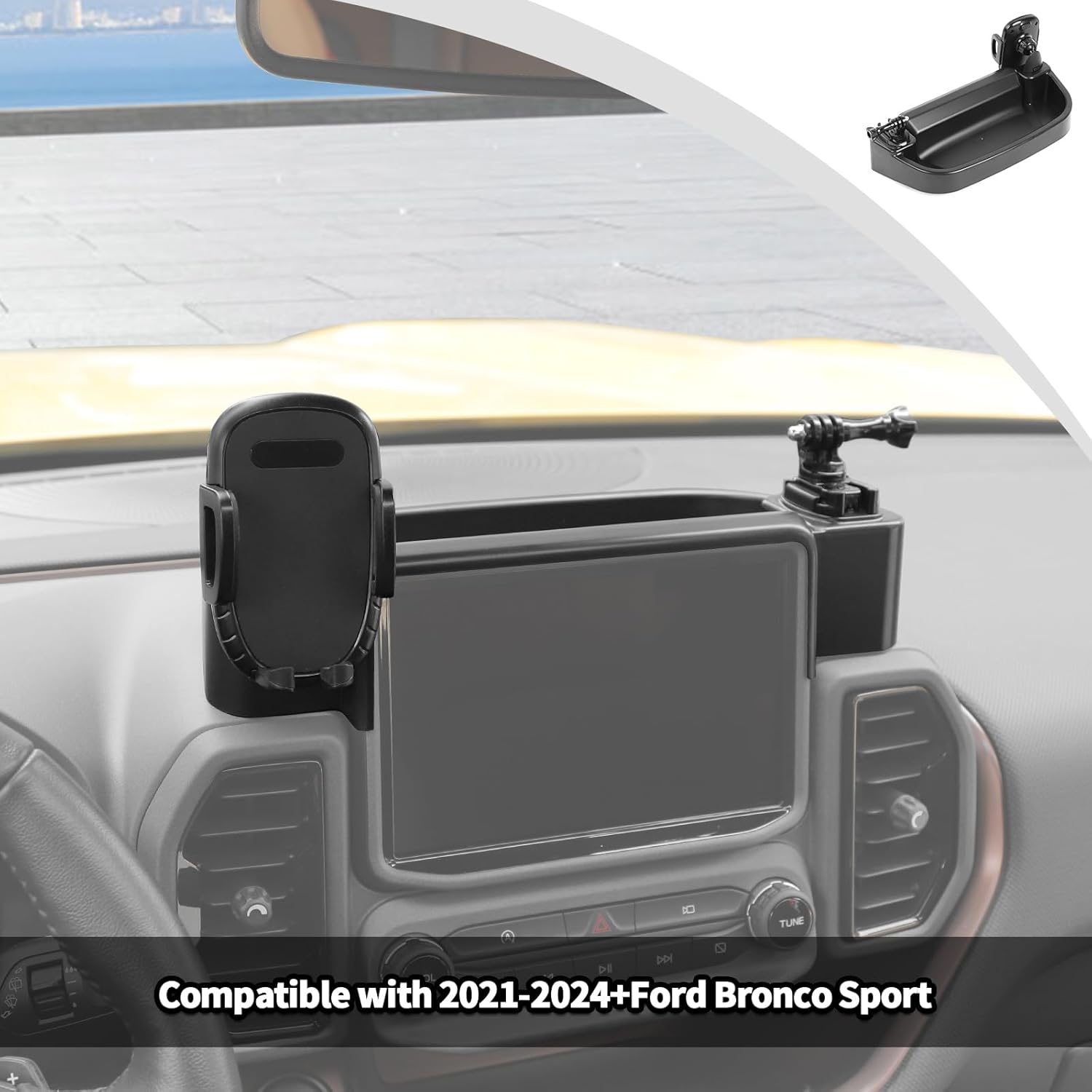 APPLICATION: Phone Holder Mount with Storage Tray Central Dashboard Phone Mount with Storage Bin Compatible with 2021-2025+Ford Bronco Sport Interior Accessories(Mobile phone stand, storage box, camera stand three in one)