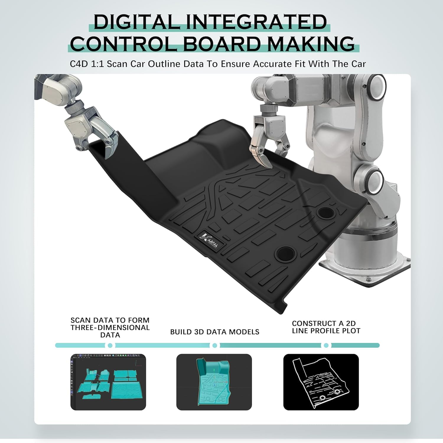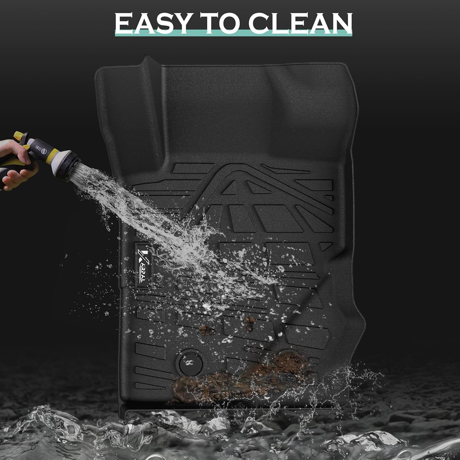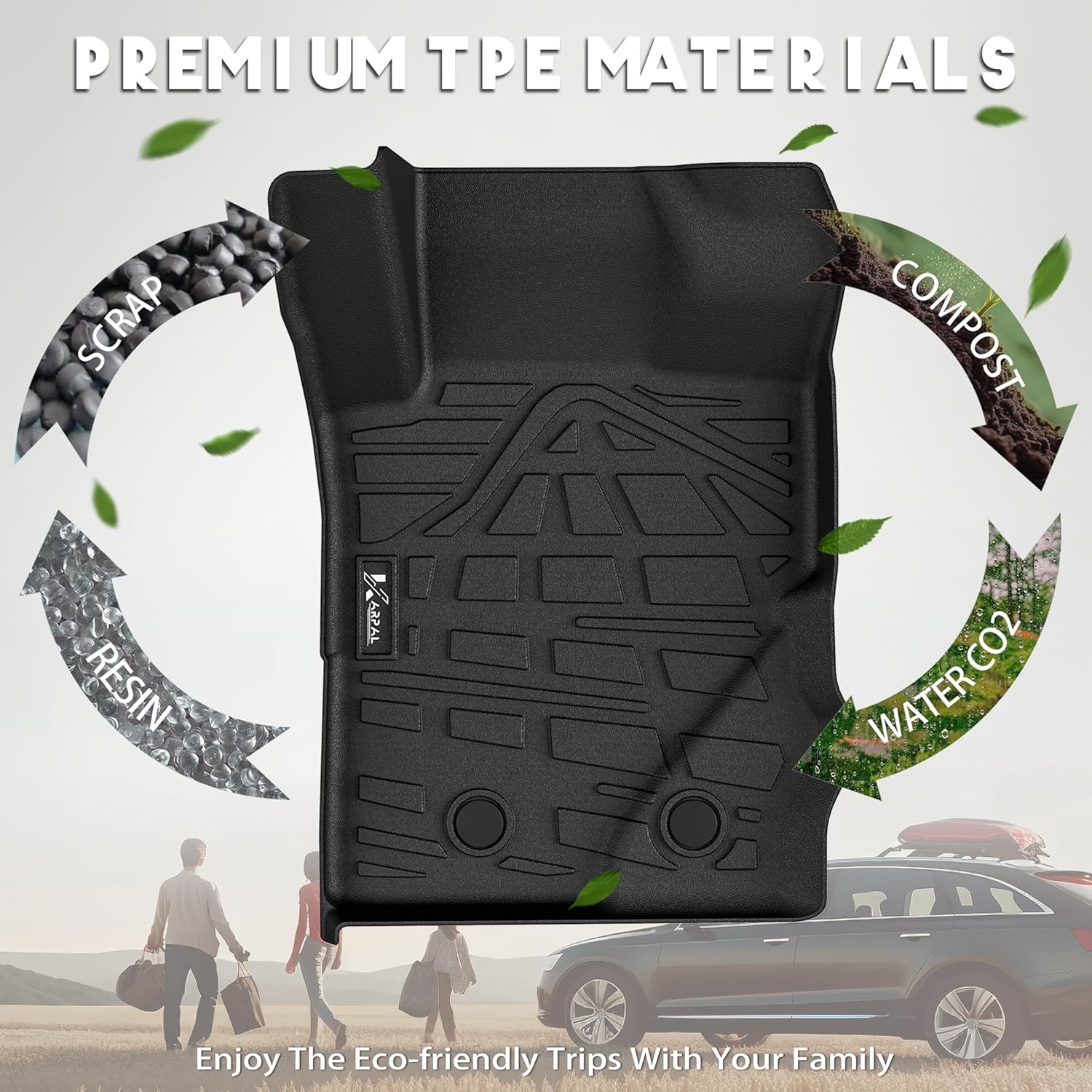 PREMIUM TPE MATERIAL: Crafted from TPE material, our floor liner contribute to environmental sustainability.TPE is a recyclable thermoplastic elastomer with excellent pliability and resilience, and the rubber floor mats have minimal environmental impact.