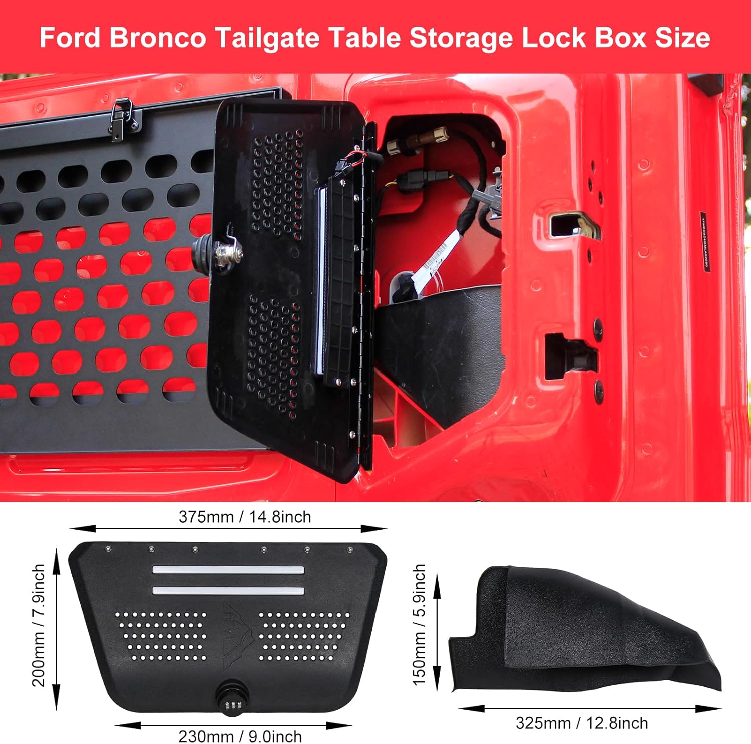 Fit:The side tailgate storage box is custom designed according to the original car which are perfectly compatible with 2021-2024 Ford Bronco 2&4 door (Not for Bronco Sport).